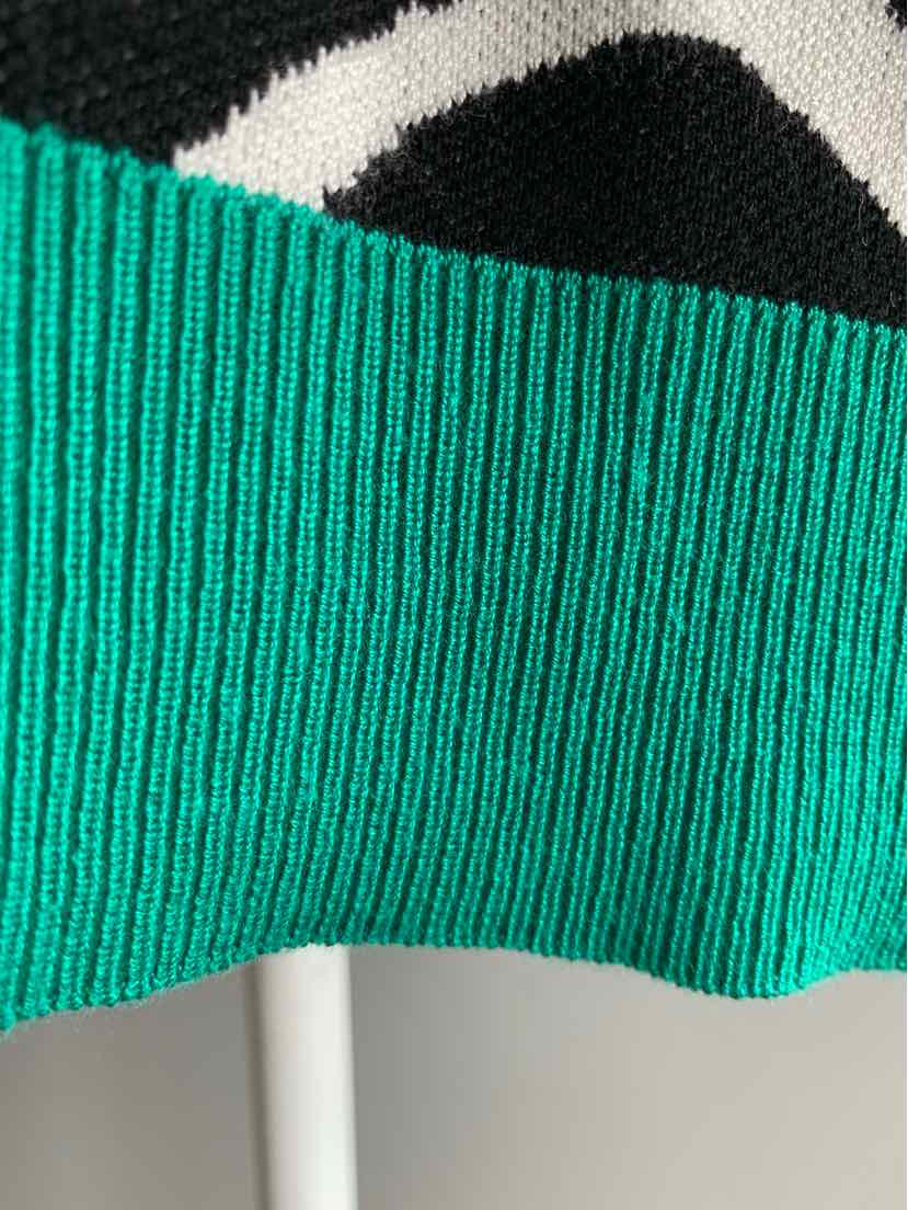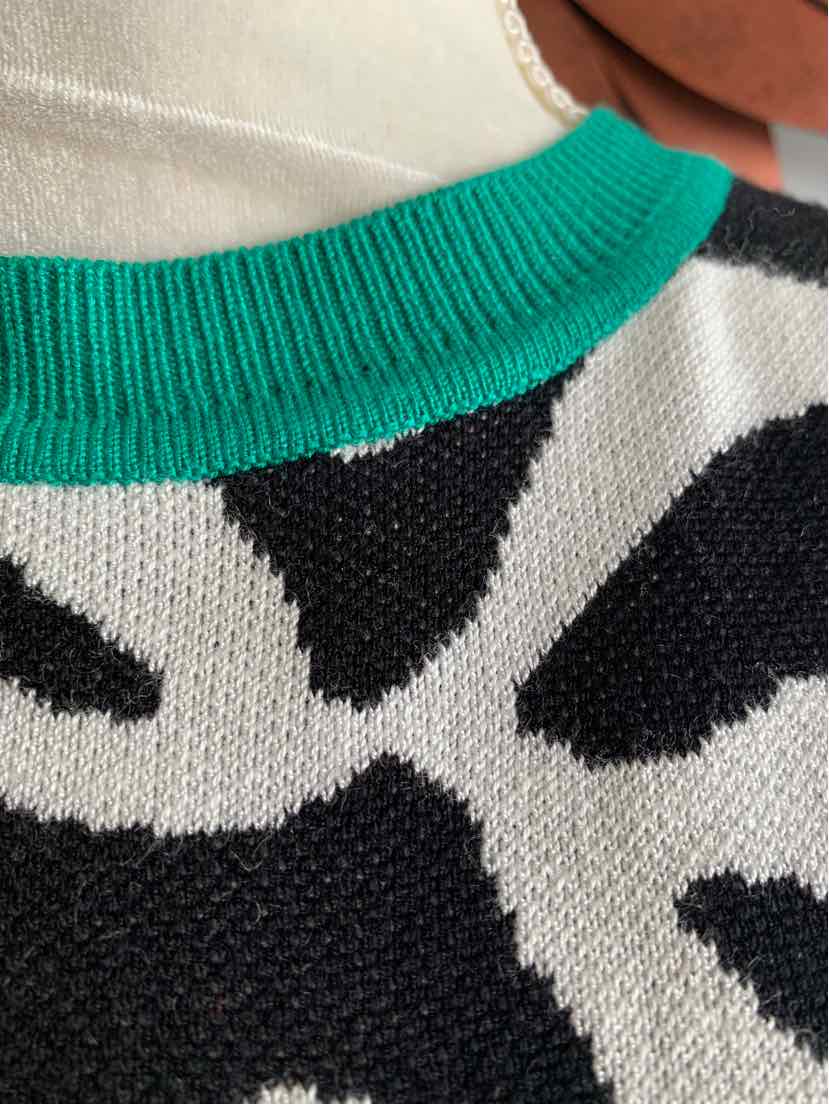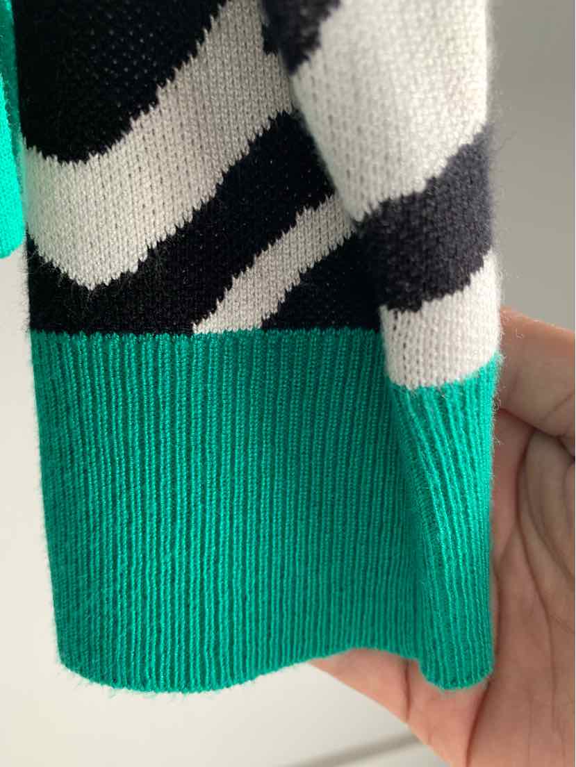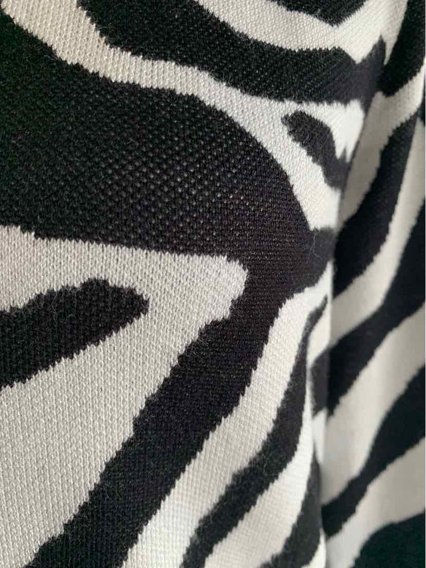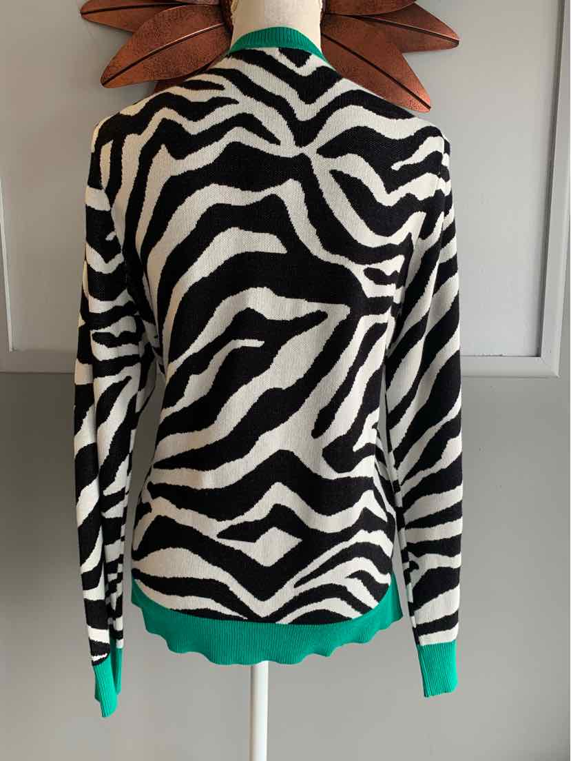 BK/WH ZEBRA STRIPE SWEATER W/ GR TRIM