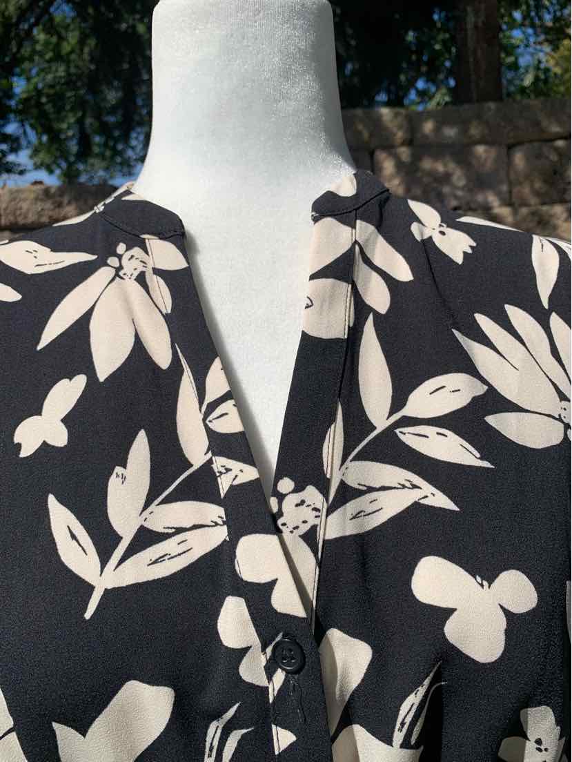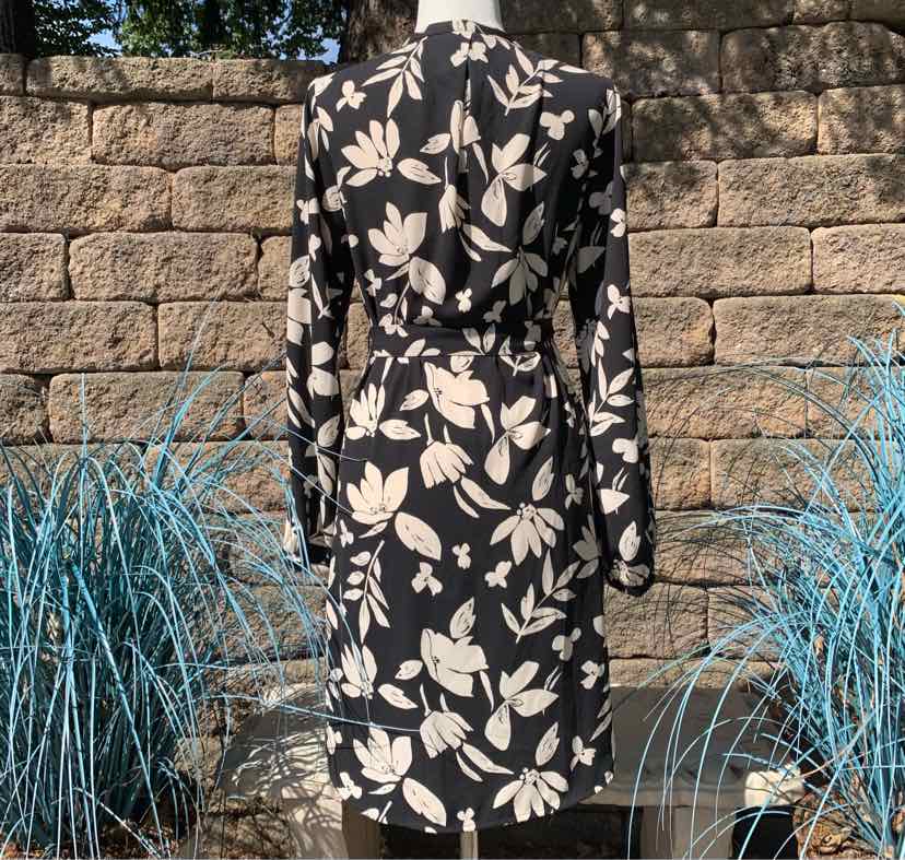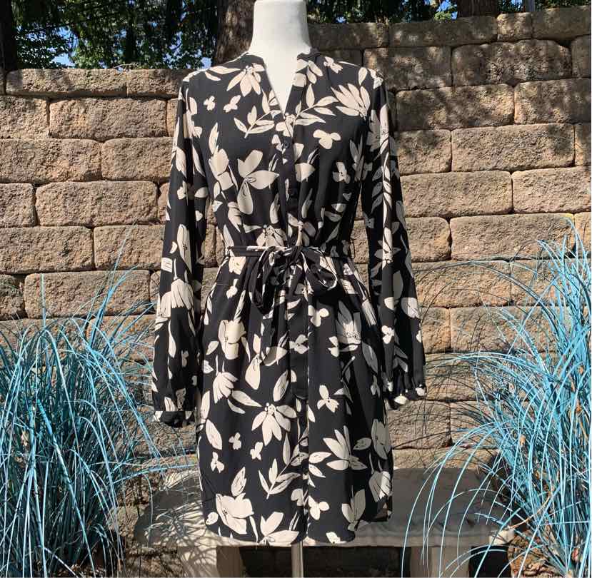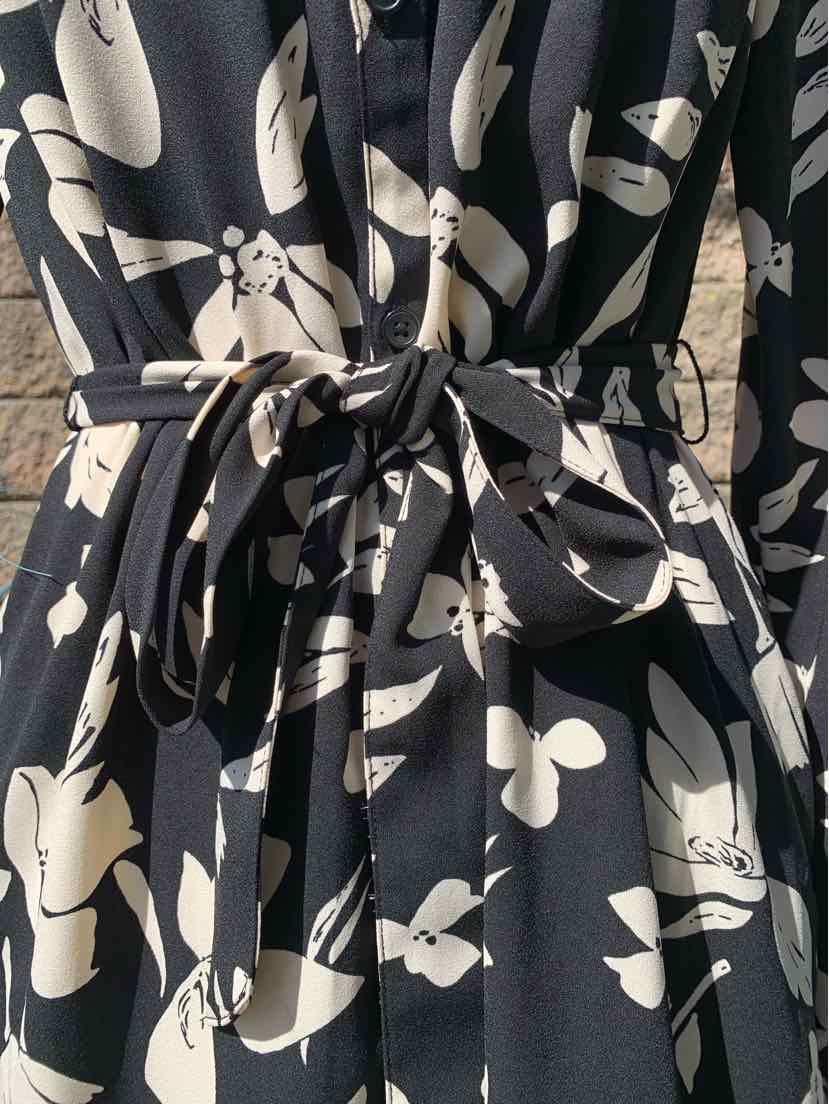 BK/CR L/S BUTTON UP DRESS FLORAL PRINT ABOVE KNEE