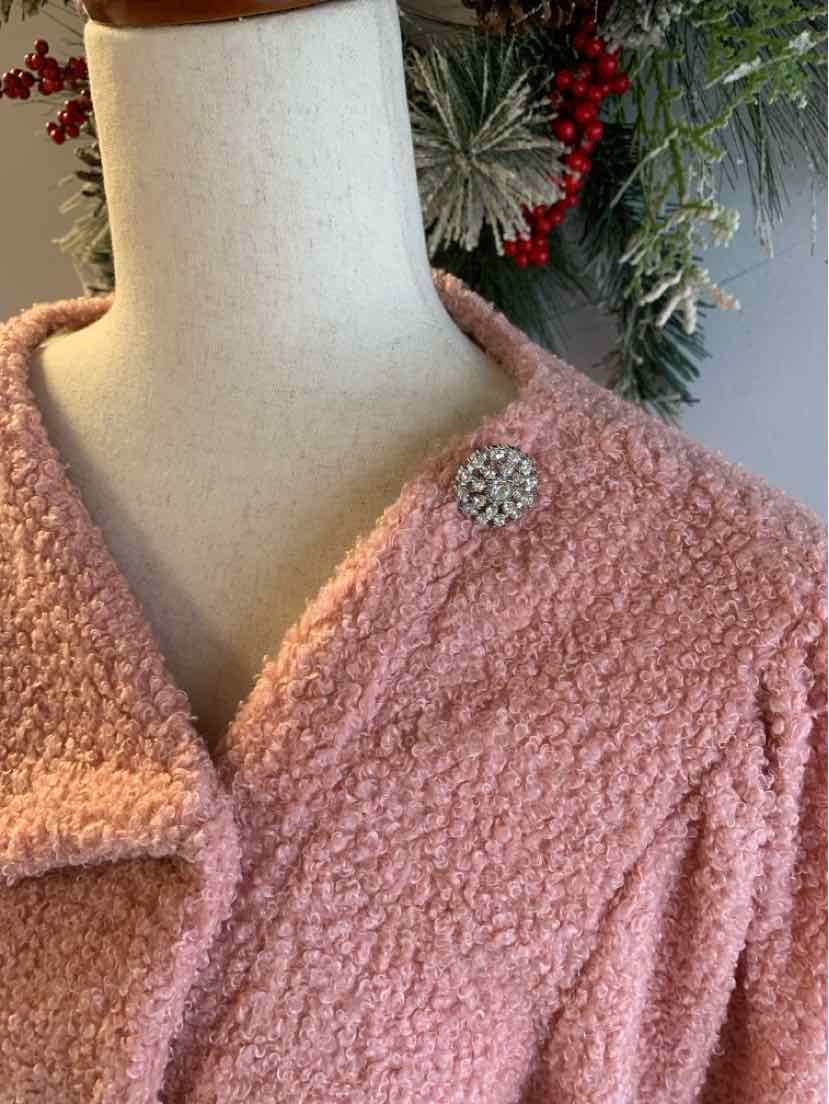 LIGHT PINK FUZZY TOP WITH SILVER STYLE BUTTONS