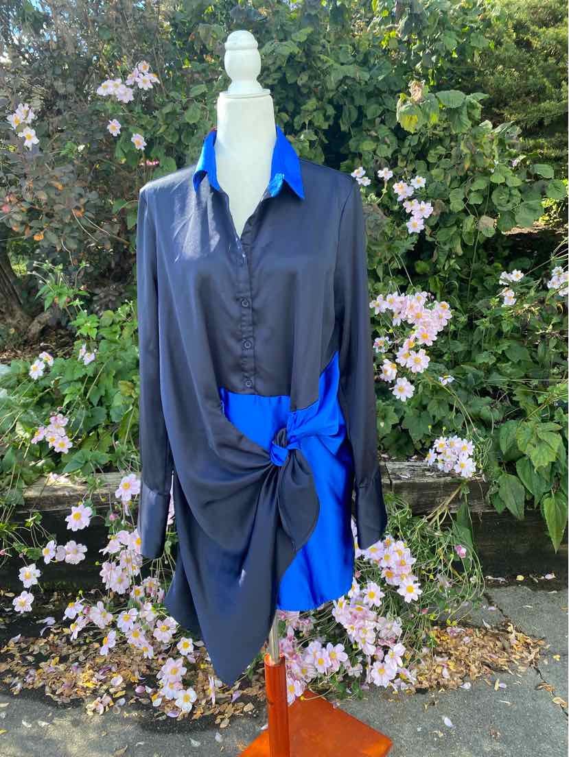BK/BL L/S BUTTON UP SHIRT DRESS WITH TIE