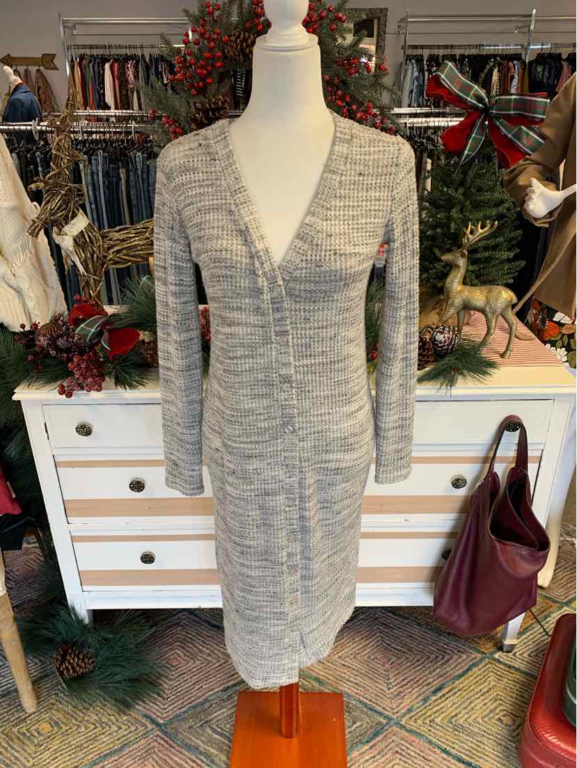 GY/LIGHT GY V NECK SWEATER DRESS WITH BUTTONS, MIDI LENGTH