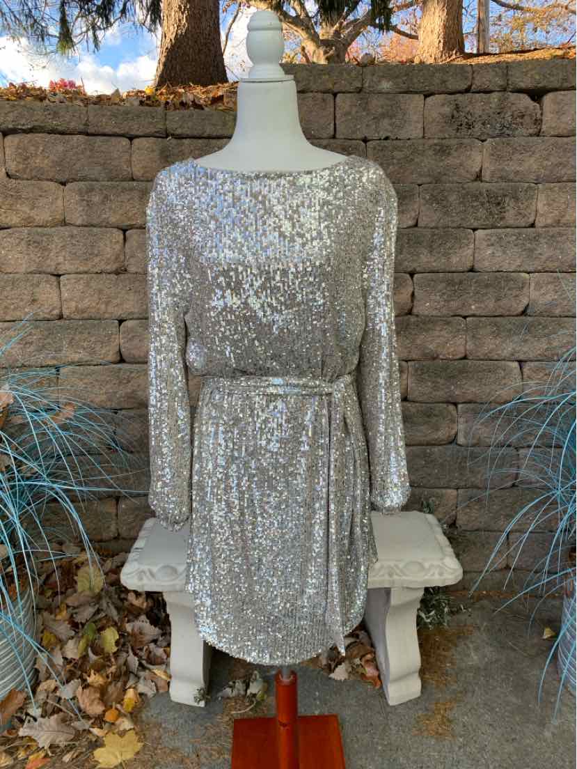 SLV L/S SEQUIN MIDI DRESS W/ BELT