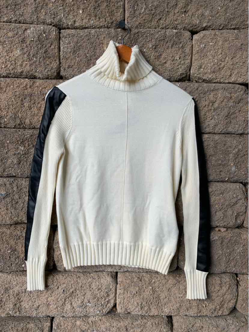 CR TURTLENECK SWEATER W/ BK FAUX LEATHER TRIM, NWT