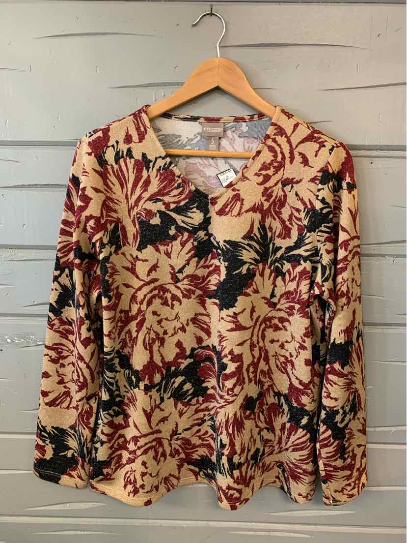 TAN/BK/BURG METALLIC V-NECK SWEATER