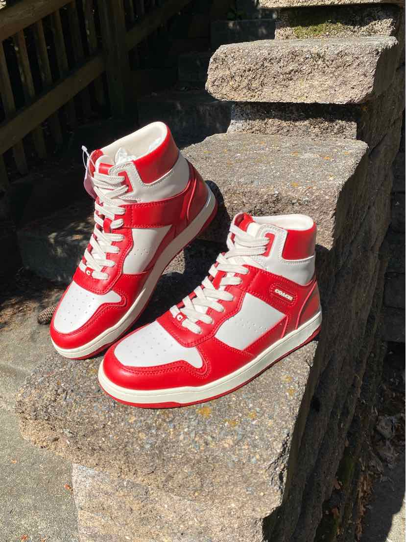 RD/WH HIGH TOP LACE UP COLOR BLOCK SNEAKERS