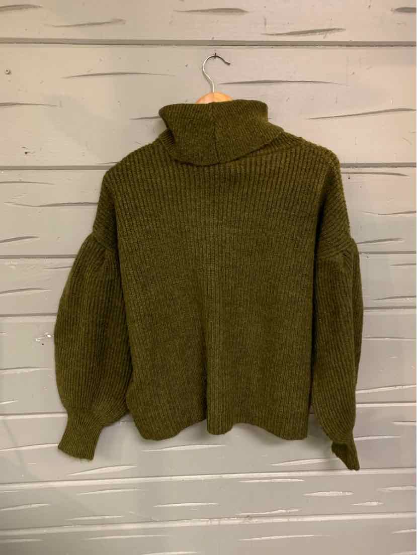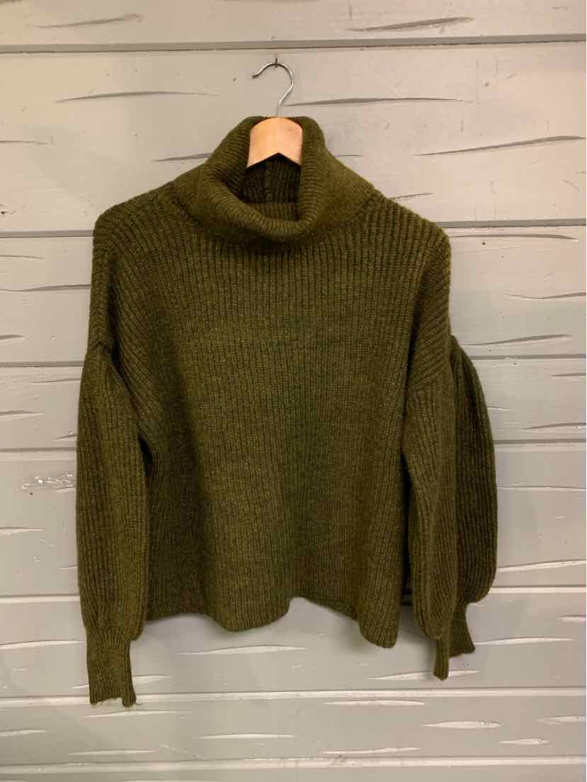 OLIVE GR PUFFED SLEEVE TURTLENECK SWEATER