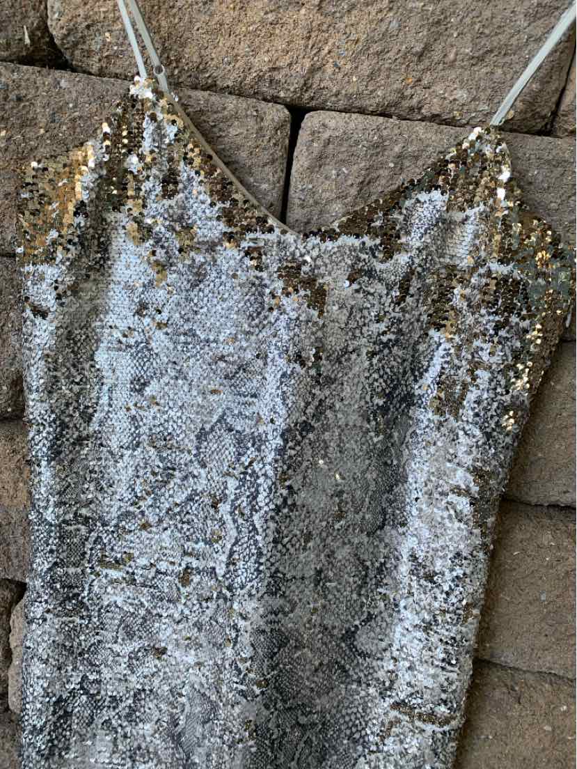SLV/GY SNAKEPRINT/ SEQUIN COCKTAIL DRESS, NWT