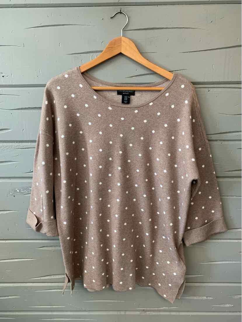 TAN/WH POLKA DOT 3/4 SLV SWEATER