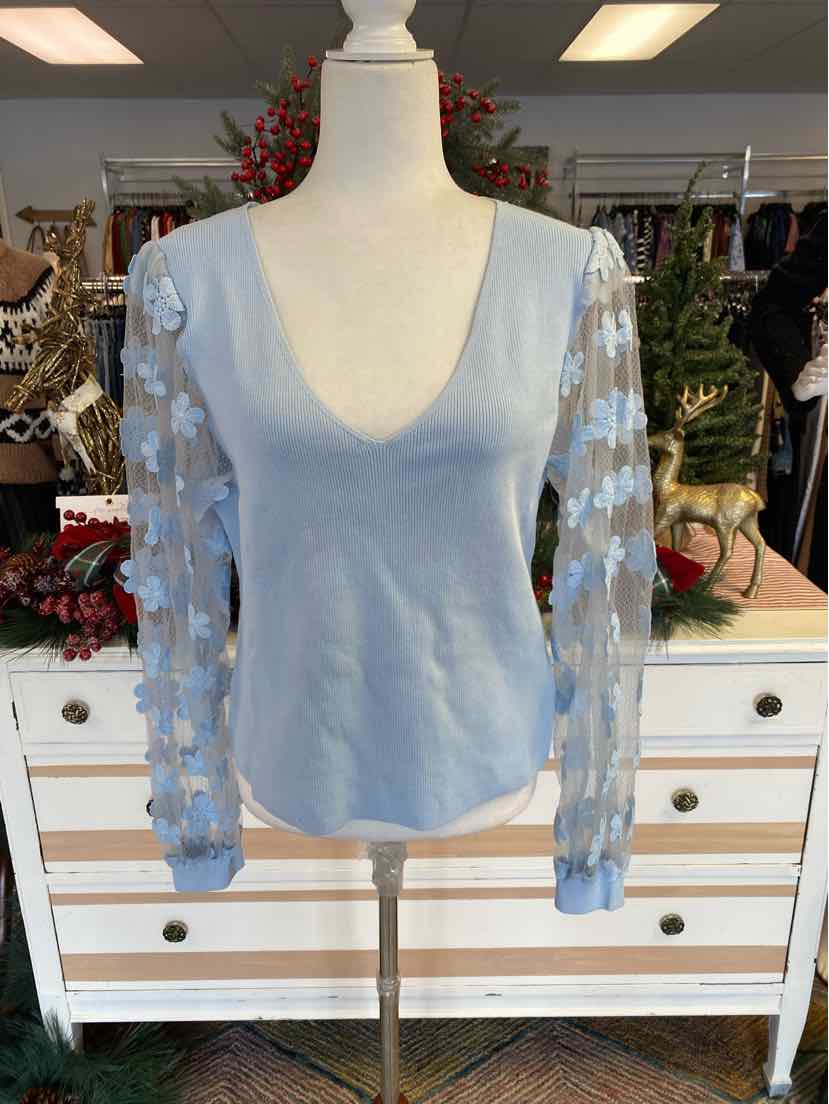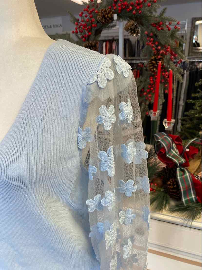 BL L/S V NECK SWEATER WITH FLOWERS ON THE SLEEVE