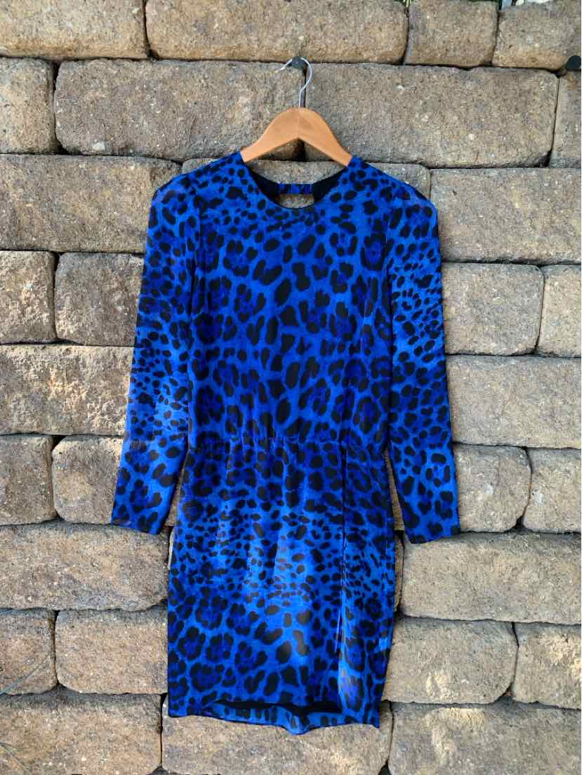 BL/BK 3/4 SLEEVE CHEETAH PRINT SHIFT DRESS