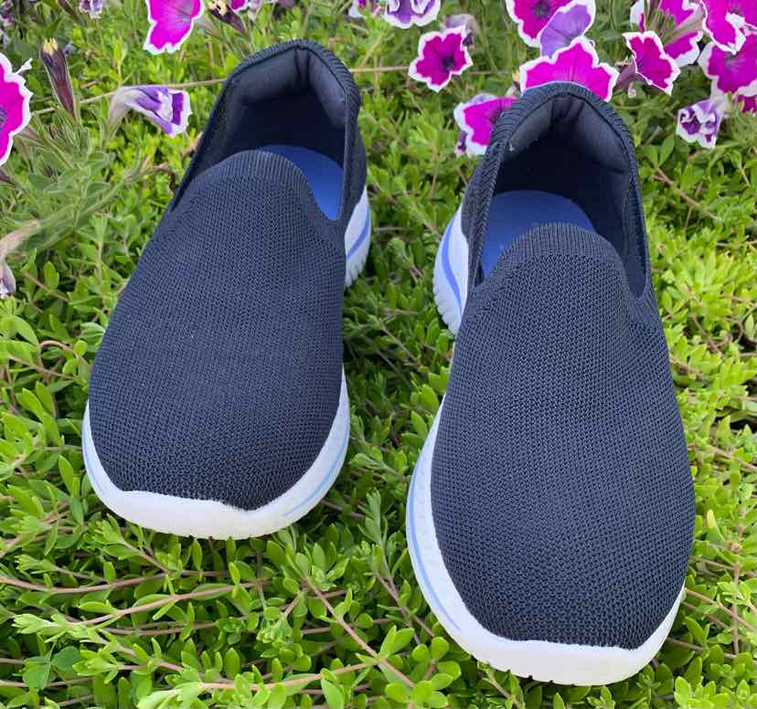 NY SLIDE ON SNEAKERS WITH LIGHT BLUE STRIPE ON SOLE