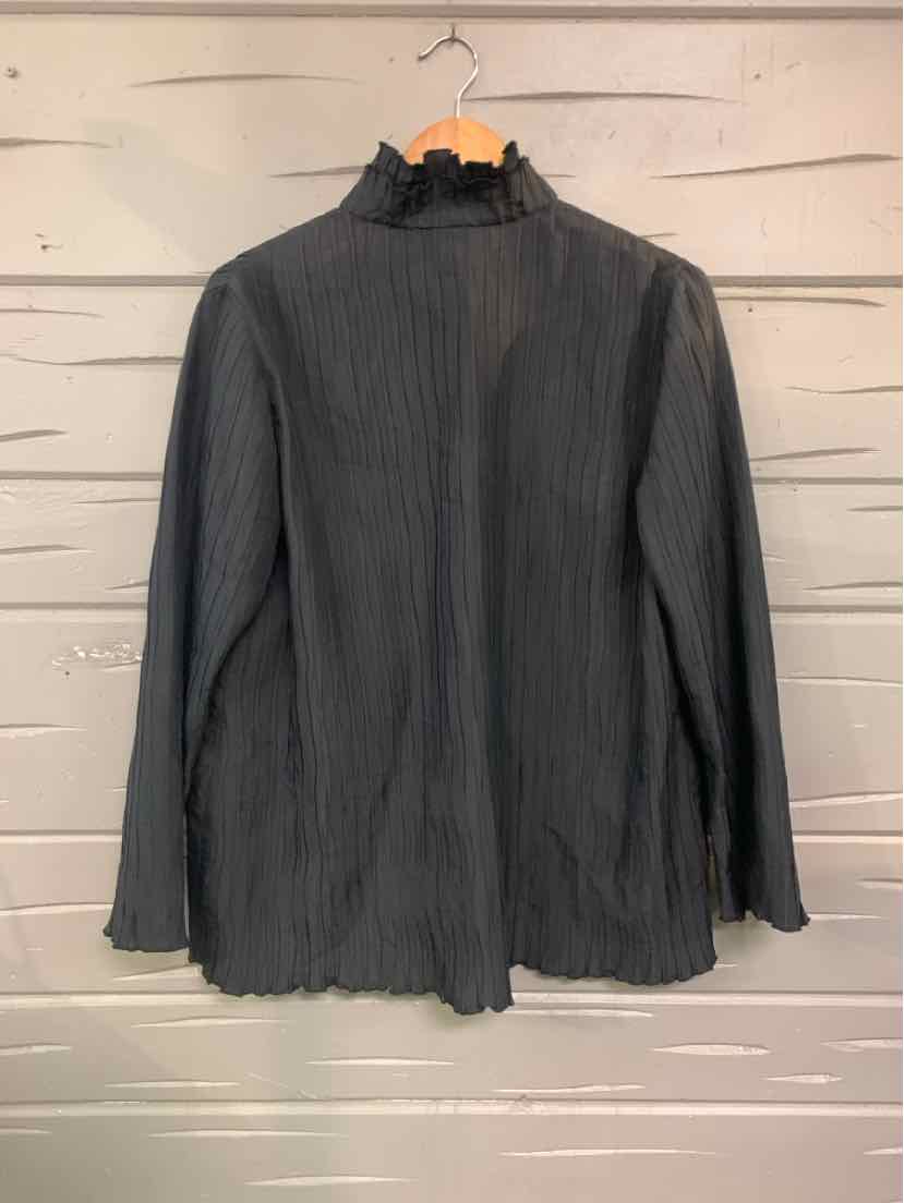 BK RIBBED/CRINKLE TEXTURE L/S BUTTON DOWN, RUFFLED COLLAR