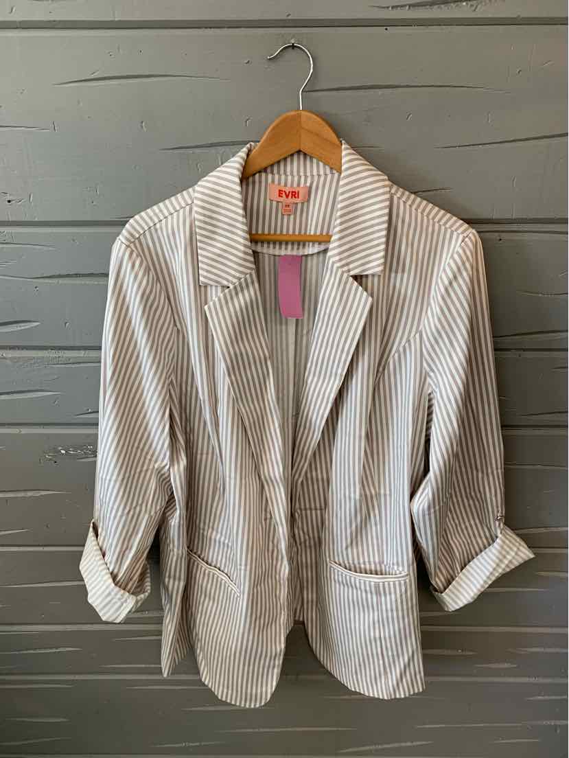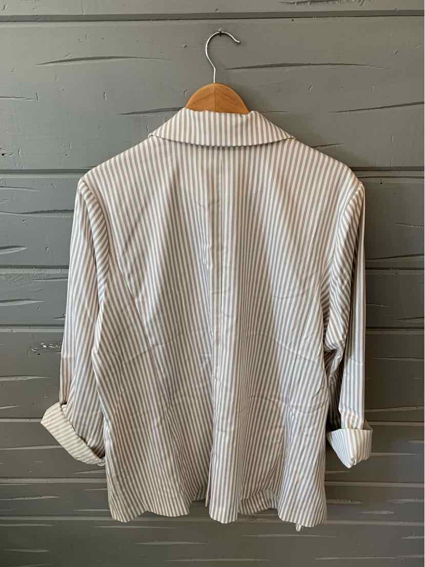 TAN/WH STRIPE BLAZER, OPEN HANG