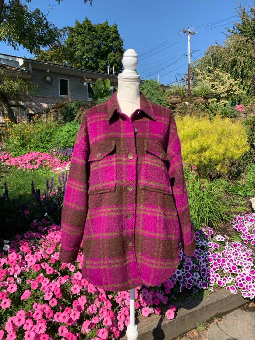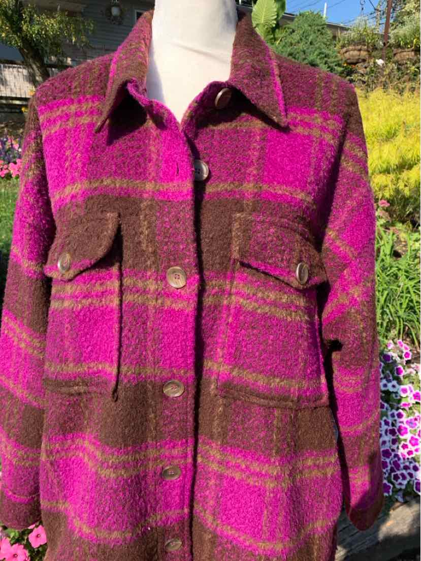 PL/TN/BURG PLAID SHACKET, NWT, THIS STYLE RUNS LARGE (SZ ACCORDING TO GA WEBSITE)