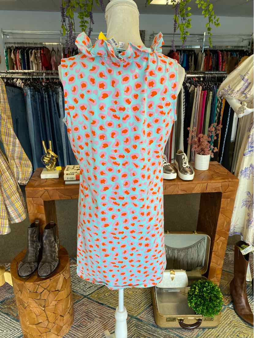 TEAL/OR SLEEVELESS CHEETAH PRINT WITH RUFFLE DETAIL