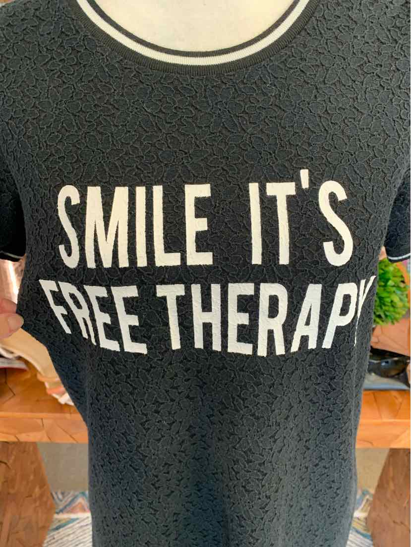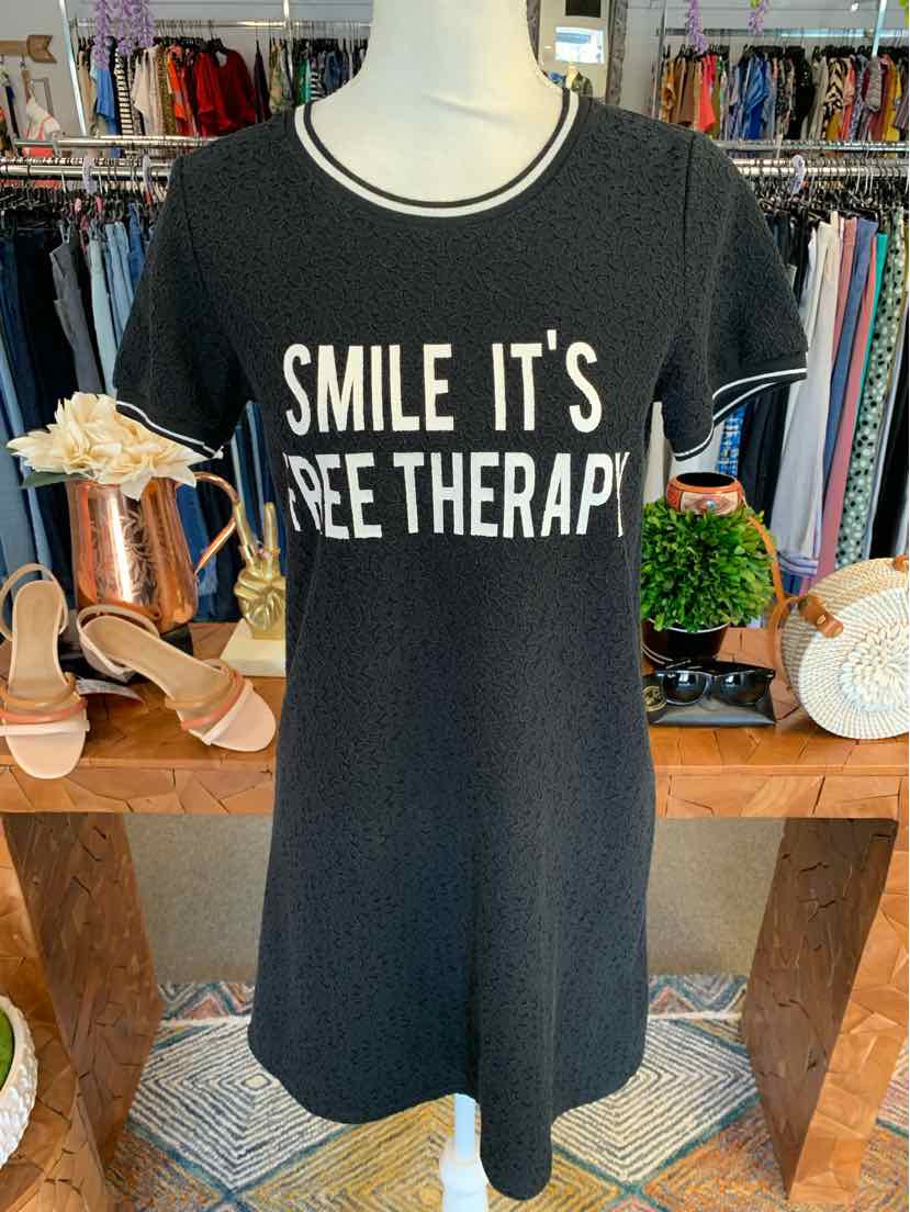 BK S/S DRESS WITH SMILE IT'S FREE THERAPY ON FRONT