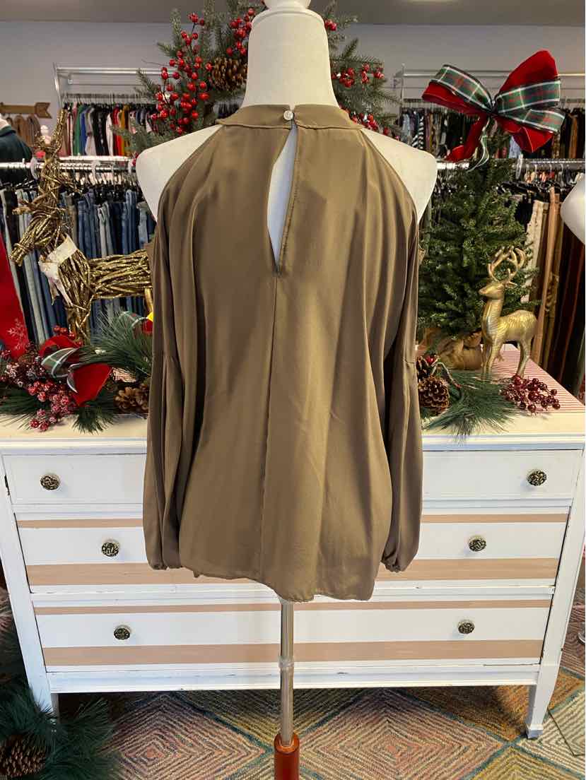 BEIGE L/S TOP, HIGH NECK WITH COLD SHOULDER