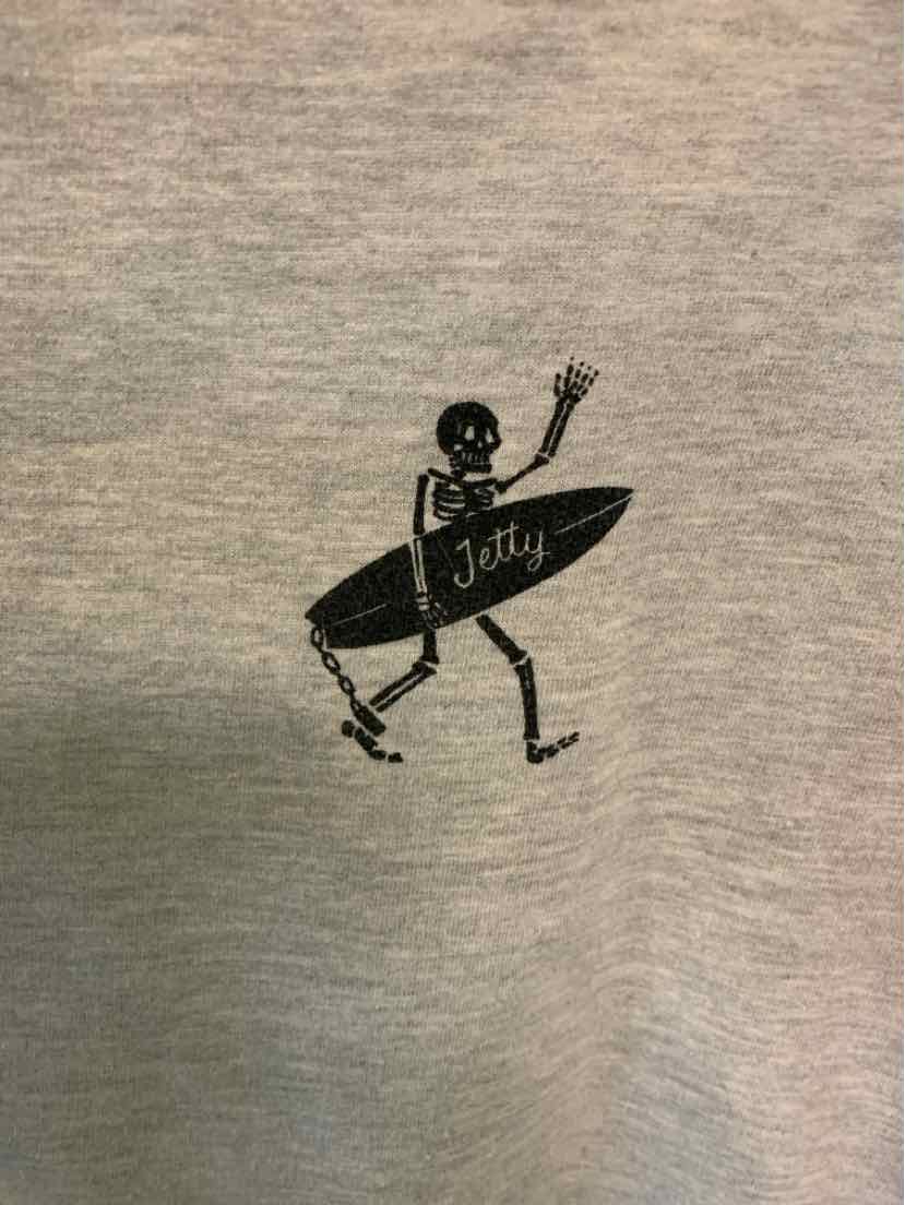 GY PULL OVER HOODED SWEATSHIRT WITH JETTY SKELETON ON IT