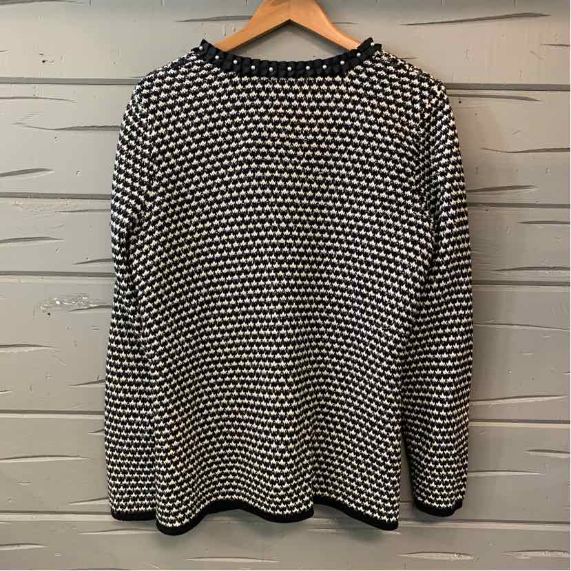 BK/CR L/S SWEATER CARDIGAN WITH SMALL PEARL DETAIL