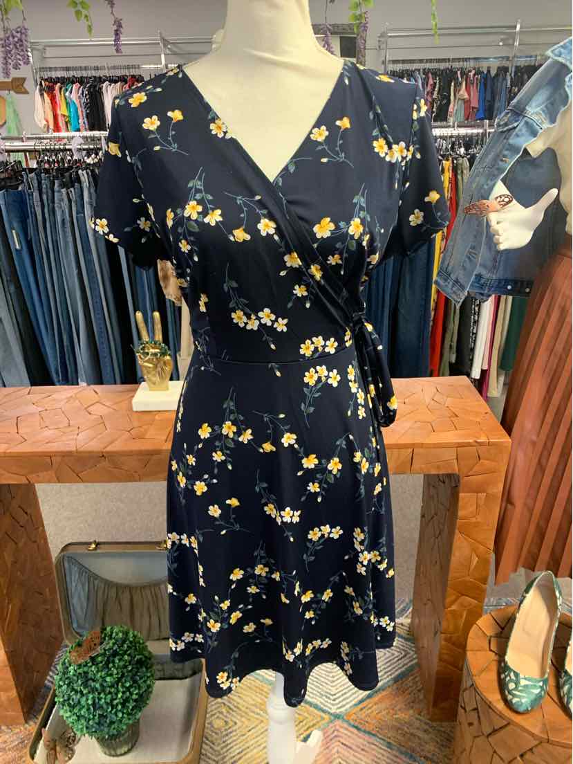 NY/YW/WH S/S DRESS, FLORAL PRINT, CROSSES AT BUST LINE