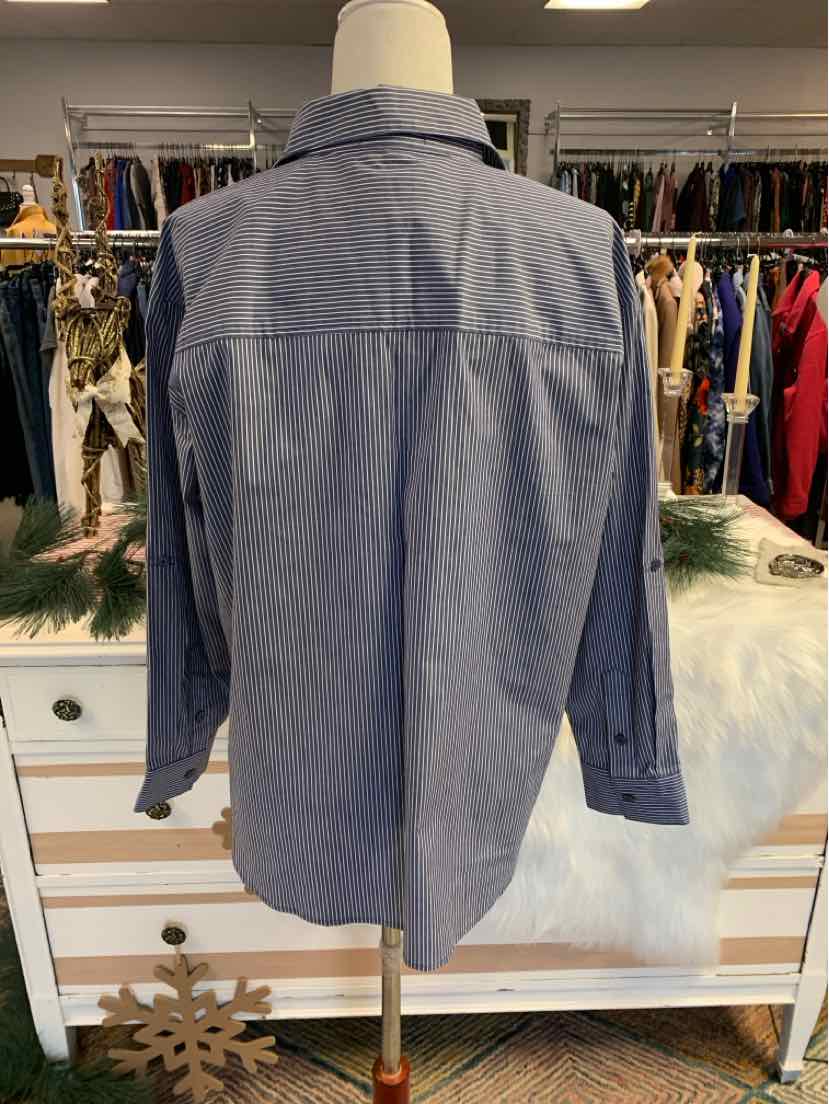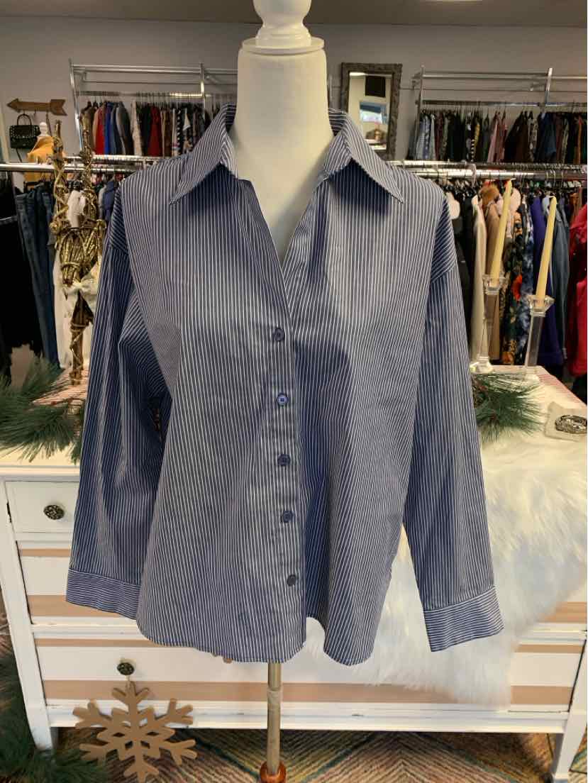 BL/WH L/S STRIPED BUTTON UP BLOUSE, NWT