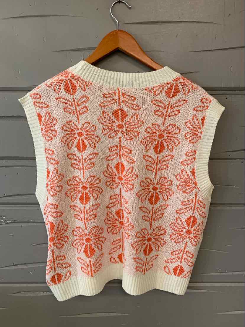 WH/OR FLORAL PATTERN SLVLESS SWEATER