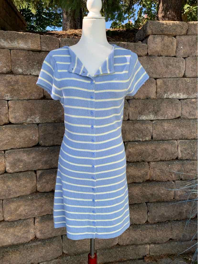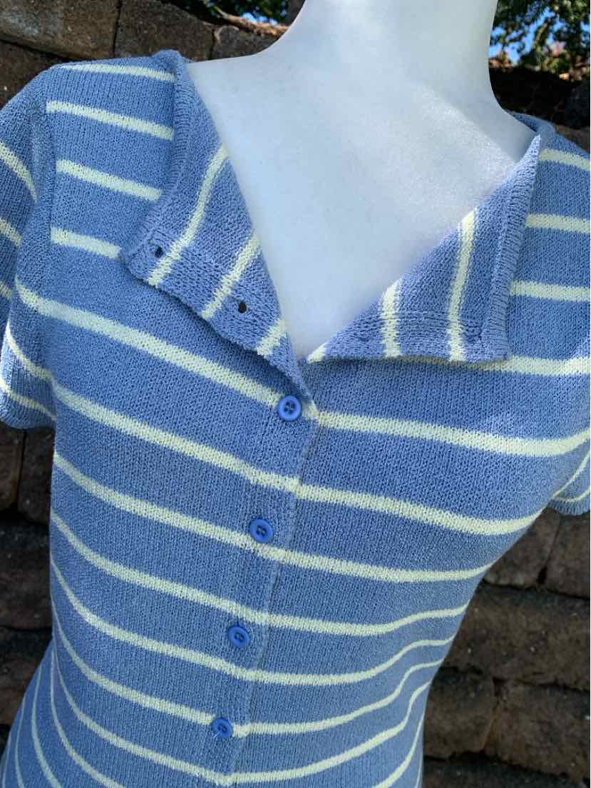 LIGHT BL/YW STRIPE KNIT SS MIDI