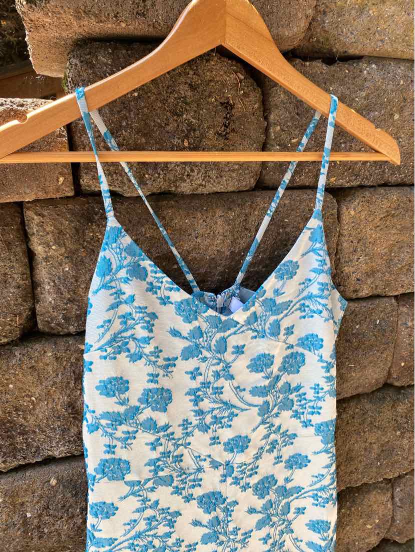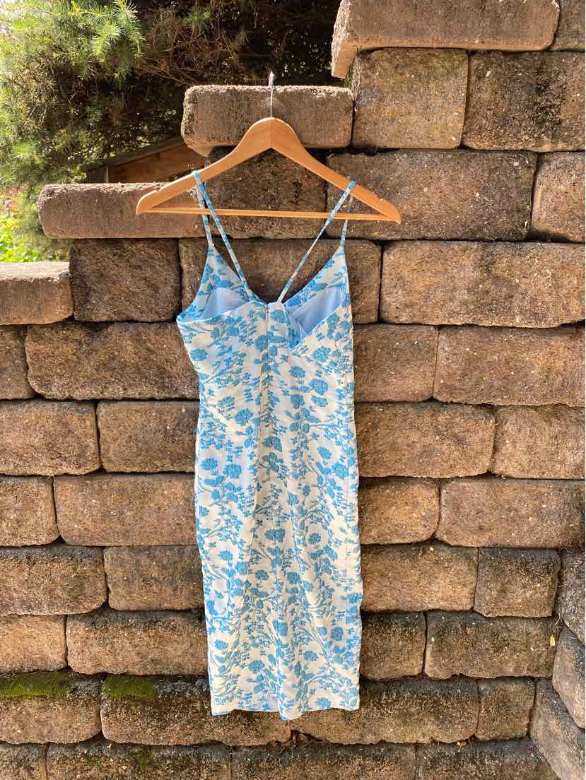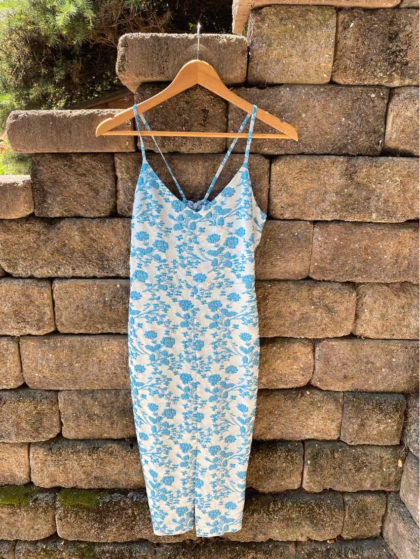 BL TONE ON TONE FLORAL PRINT DRESS, MIDI LENGTH SPLIT FRONT, NWT