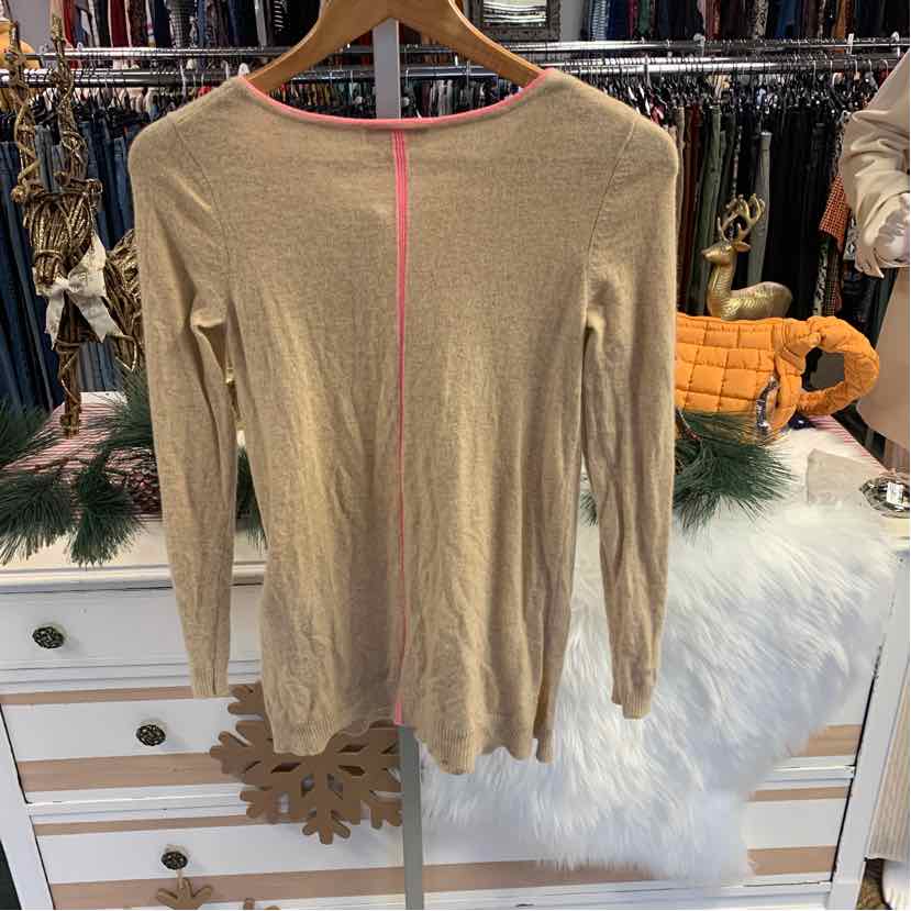 TAN 100 ASHMERE SWEATER W/ PK TRIM