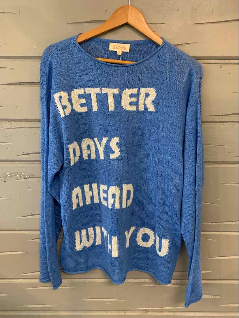 LIGHT BL "BETTER DAYS AHEAD WITH YOU" SWEATER