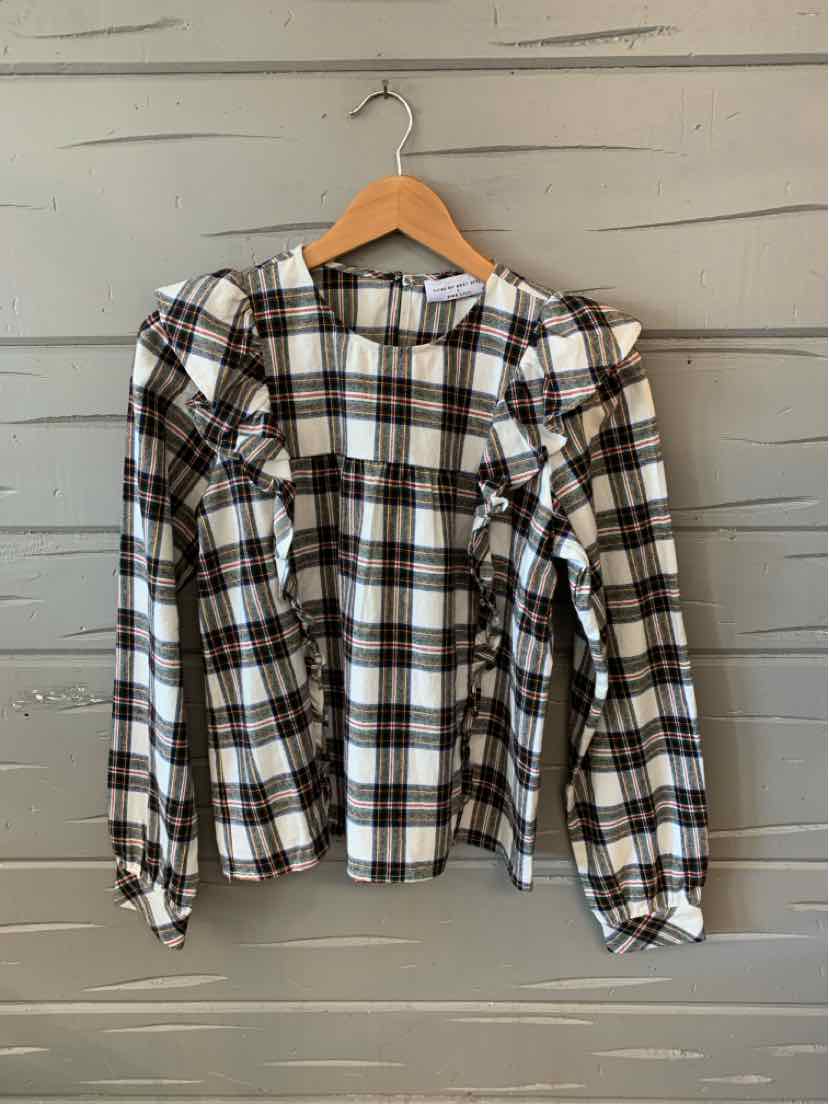 WH/NY/RD PLAID TOP WITH RUFFLE DETAIL