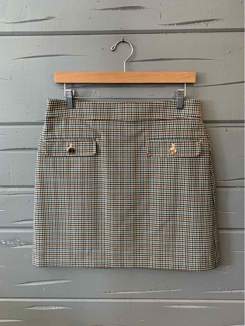 CR/NY/BL PLAID PRINT SKIRT WITH FLAP FRONT POCKETS
