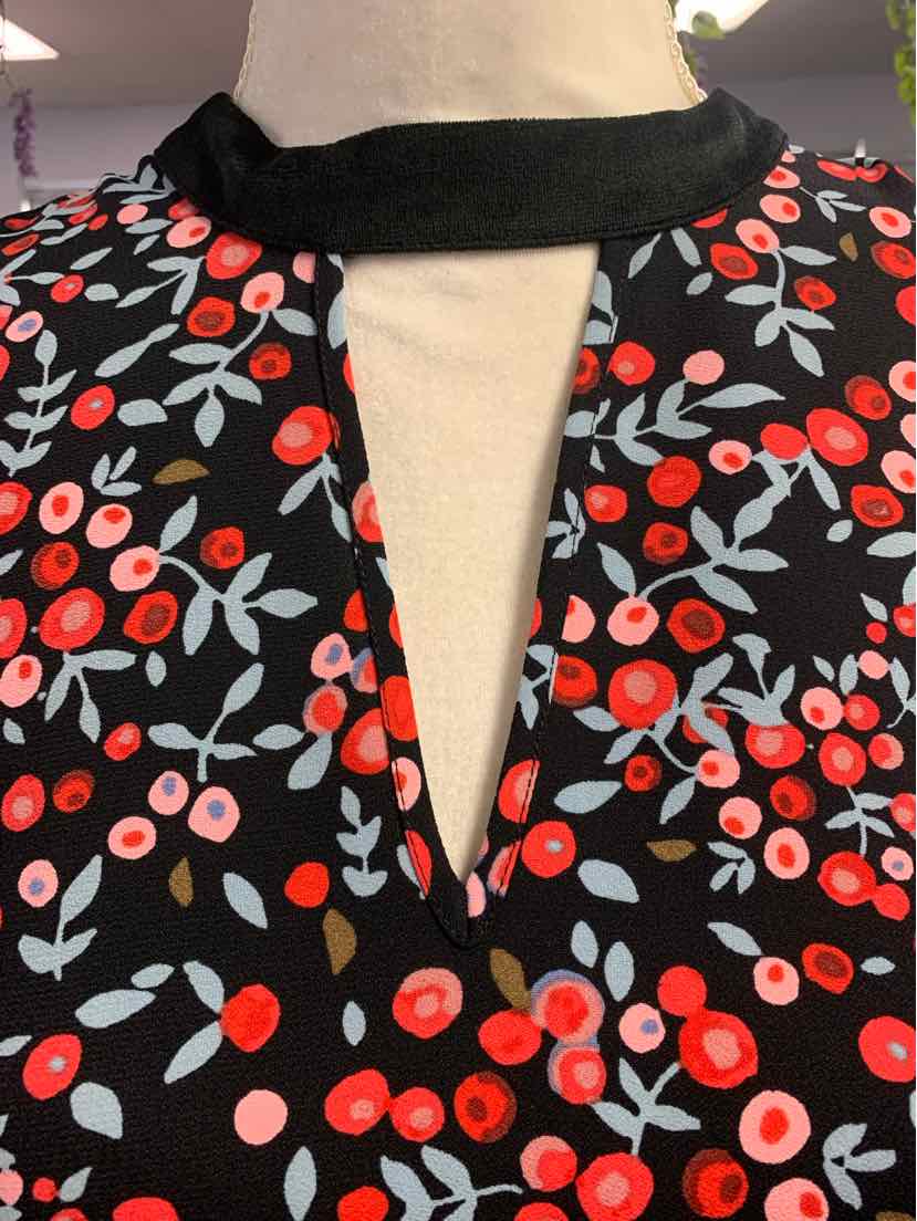 BK/RD/BL FLORAL PRINT DRESS, HIGH NECK, ABOVE KNEE FIT
