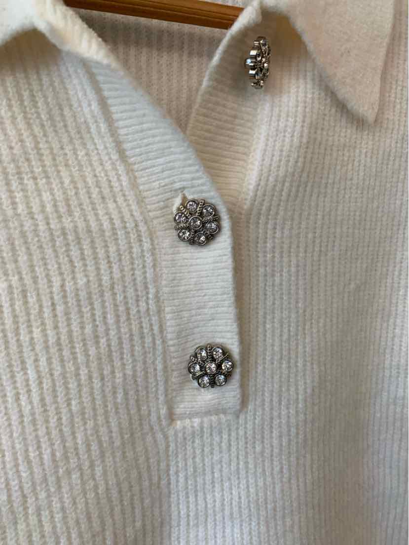 WH RIBBED POLO SWEATER W/ RHINESTONE BUTTONS