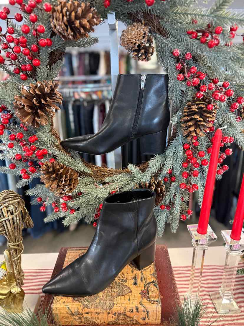 BK LEATHER, BLOCK HEEL POINTED TOE ANKLE BOOT