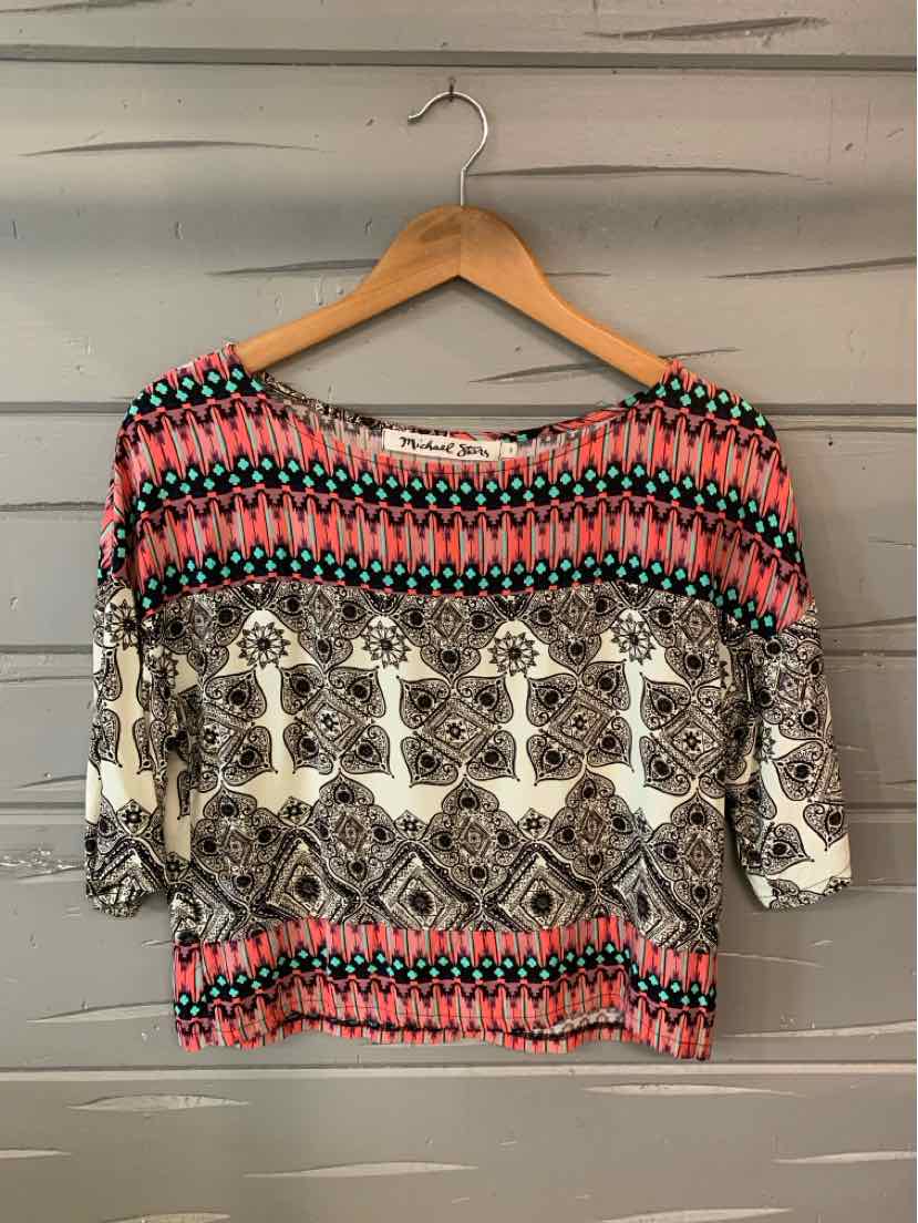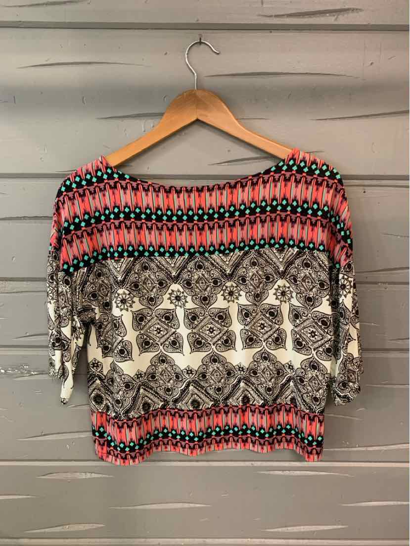 CL/TAN/BK 3/4 SLEEVE BOXY CROPPED FIT, AZTEK PRINT