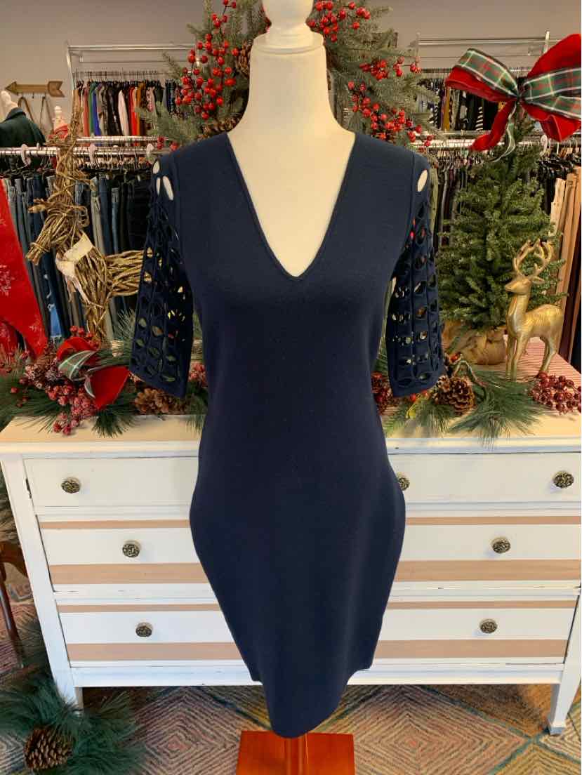 NY LATTICE ELBOW SLV, KNIT DRESS.