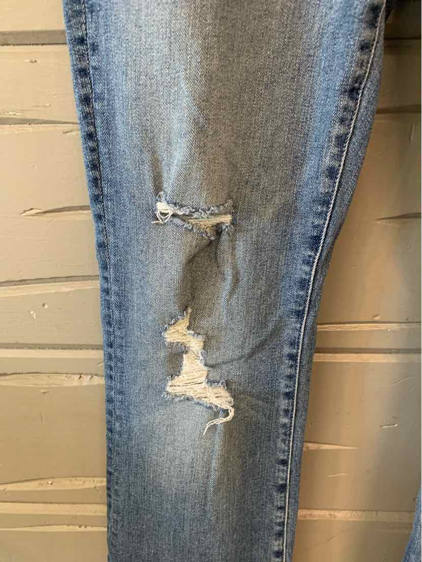 MED BL FLARE JEAN, SLIGHT DISTRESSING