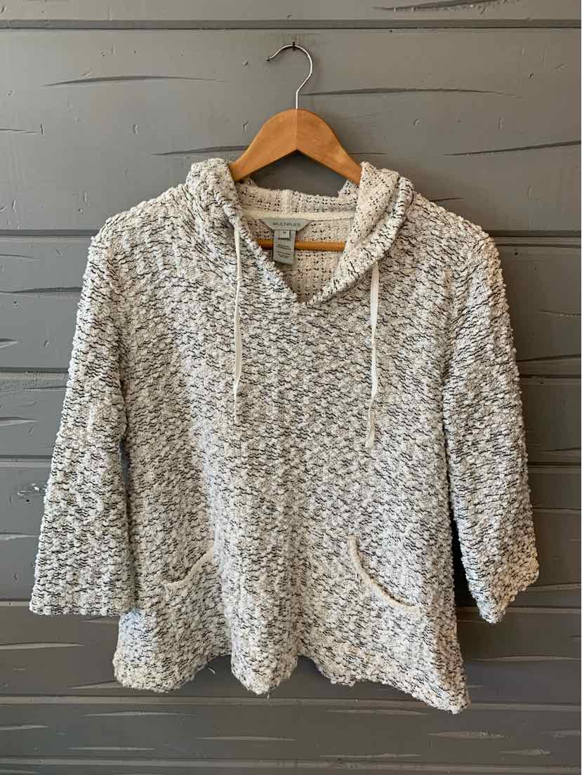 WH/BK POPCORM TEXTURE HEEDED 3/4 SLV