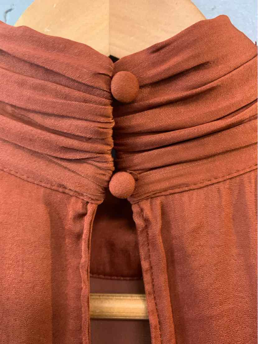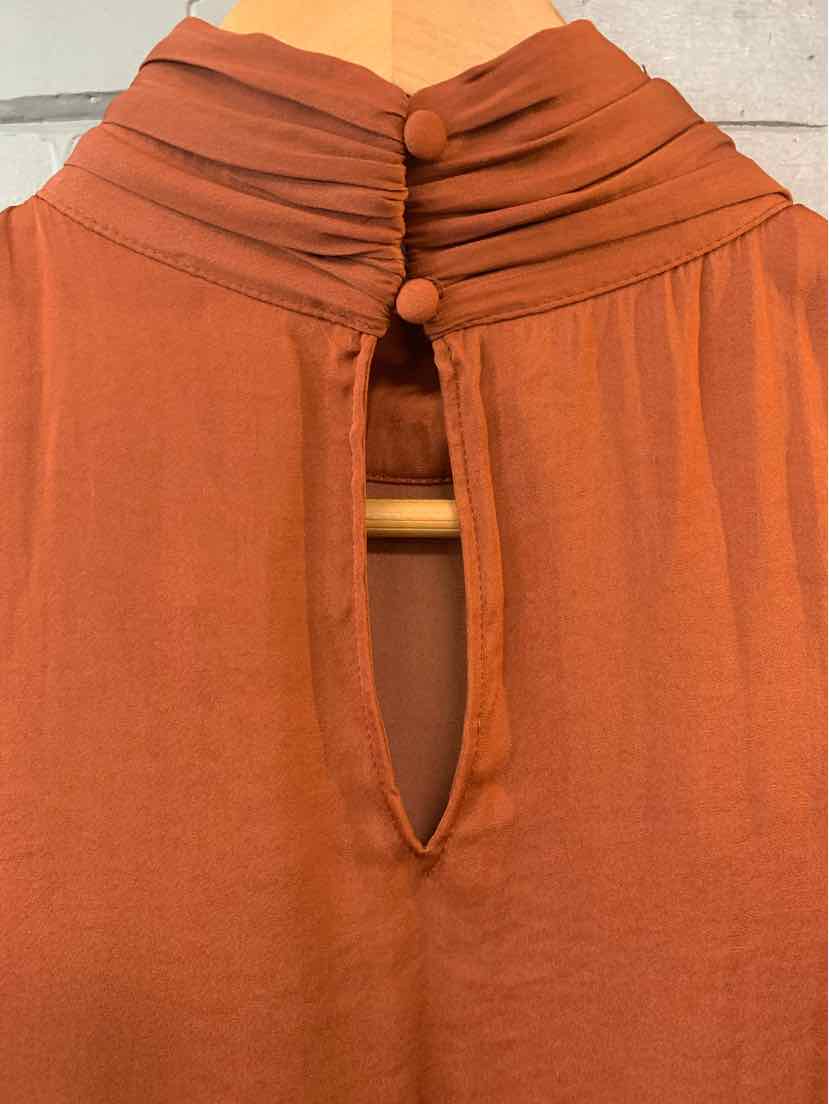 OR SLEEVELESS SILK TOP WITH GATHERING DETAIL UNDER BUST, HIGH NECK