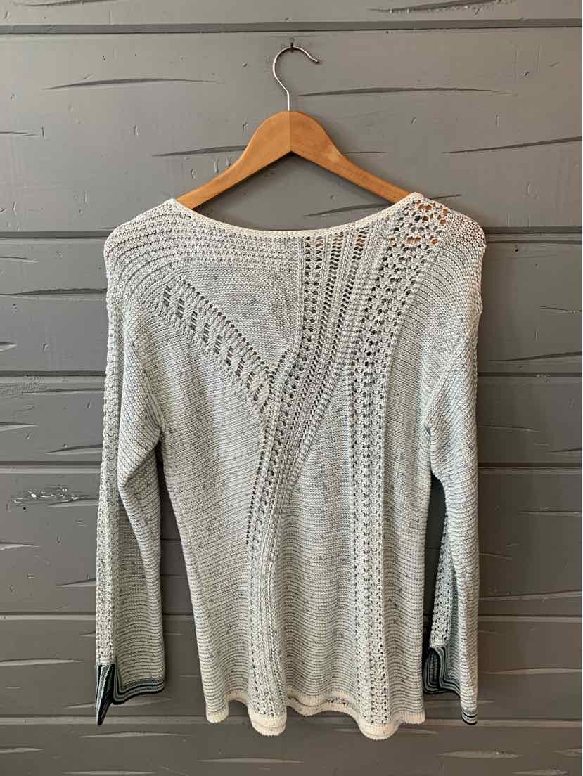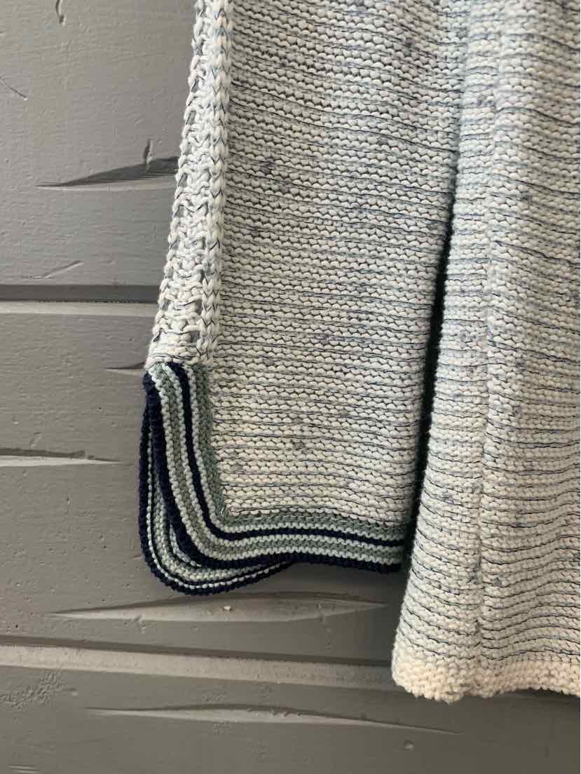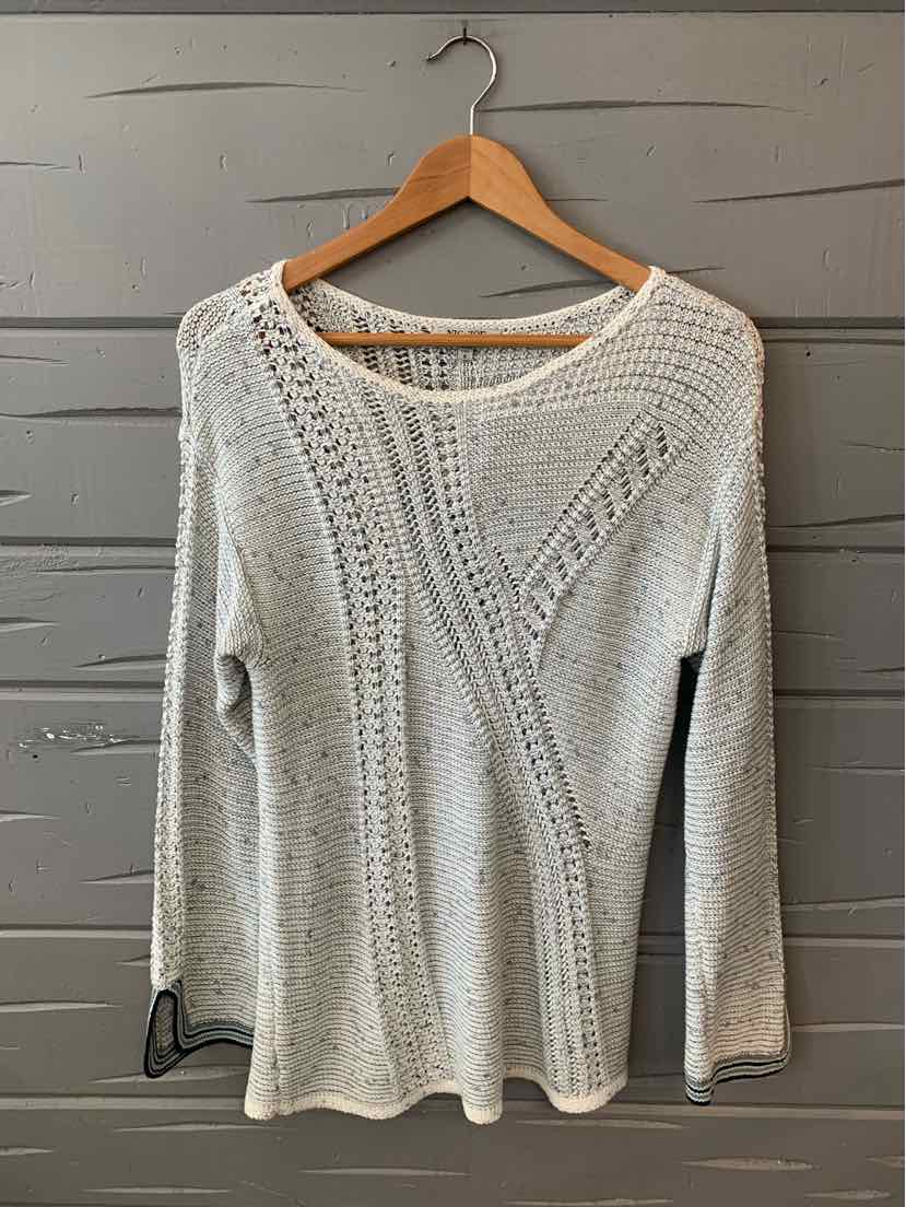 BL/WH KNIT SWEATER, SLV HEM DETAIL