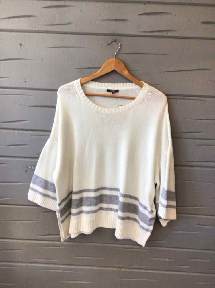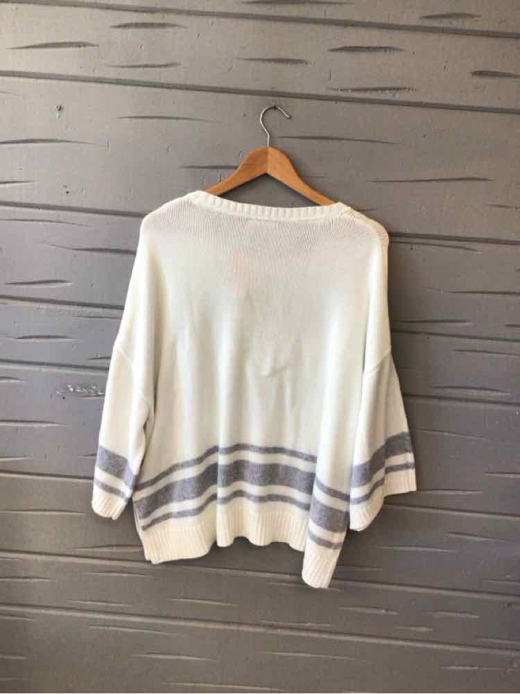 WH KNIT SWEATER W/ GY STRIPE DETAIL