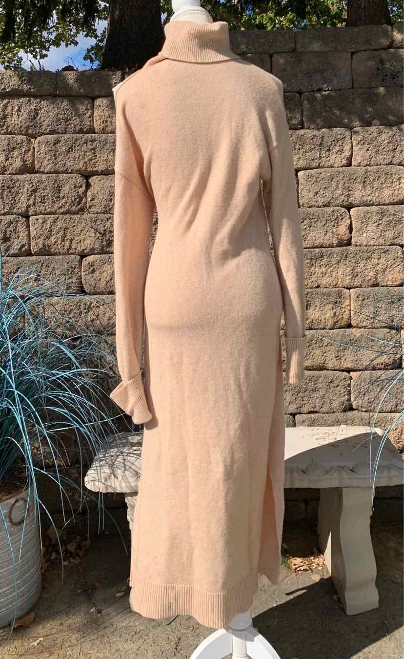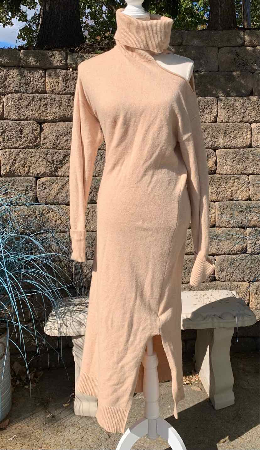 TAN L/S TURTLE NECK MIDI DRESS WITH HOLE BY SHOULDER