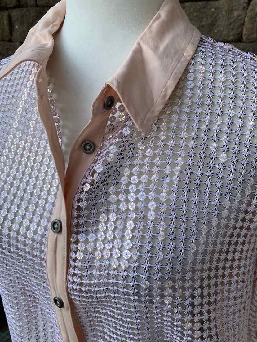 LIGHT PK SHEER LONG-SLEEVED BUTTON UP BLOUSE W/ SEQUIN EMBELLISHMENT, NWT