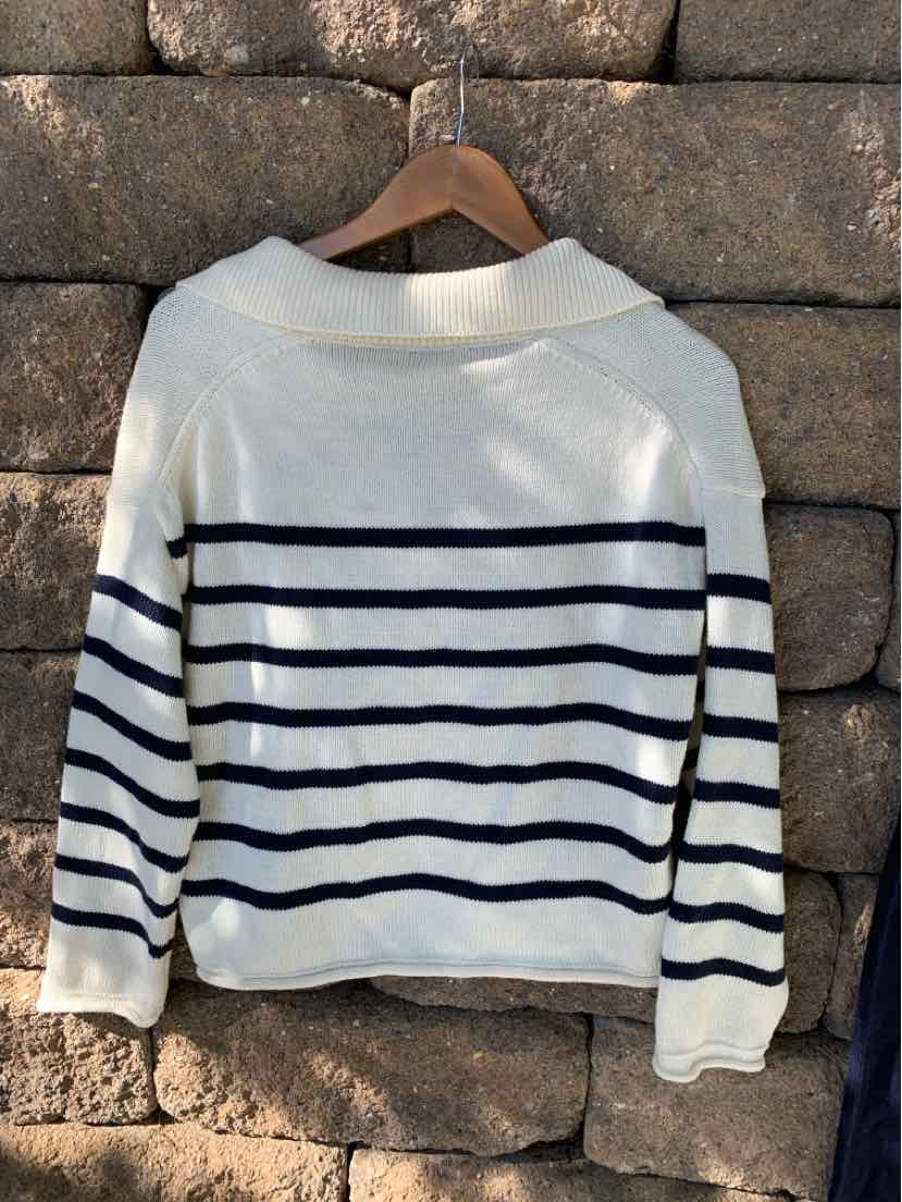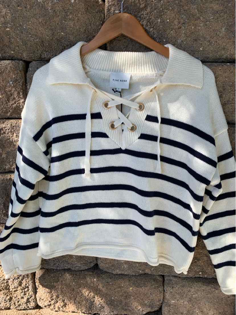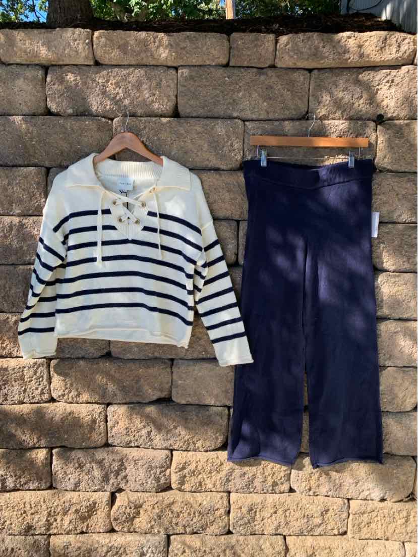 NY/WH STRIPE POLO LACE UP SWEATER AND KNIT PANT SET