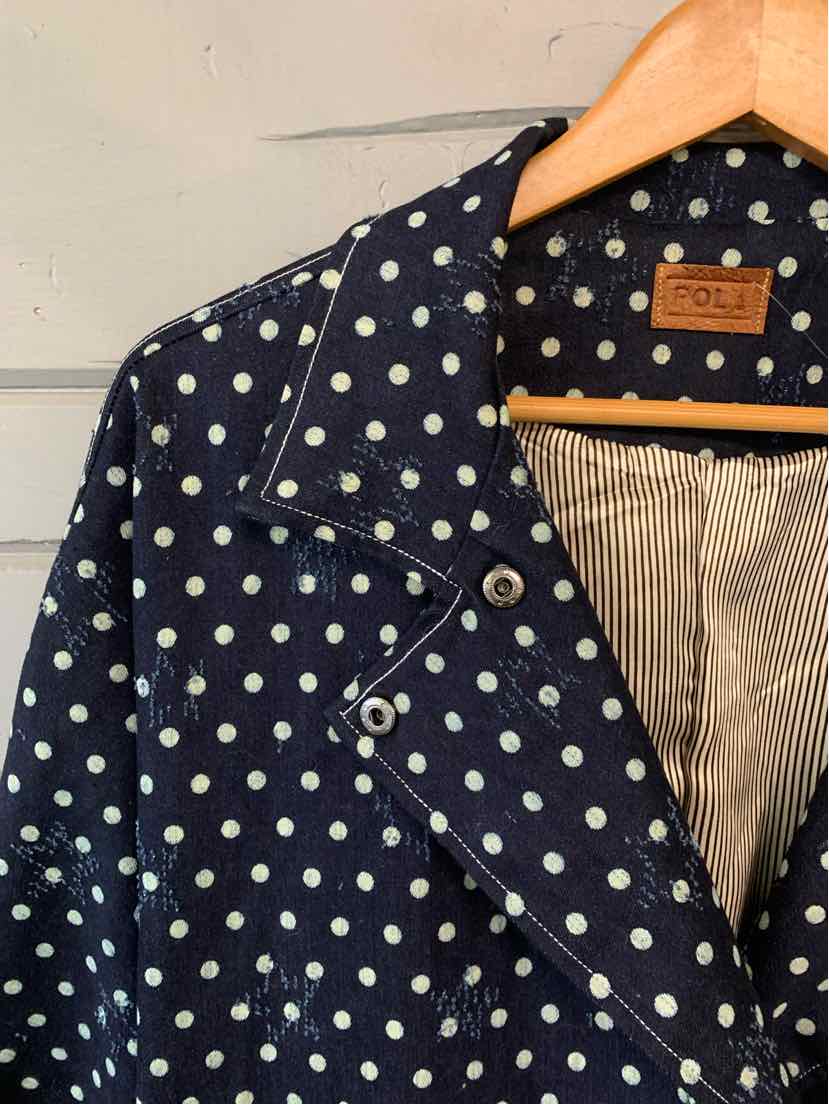 DARK NY/WH POLKA DOT OVERSIZED DENIM TRENCH COAT