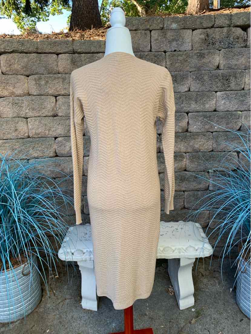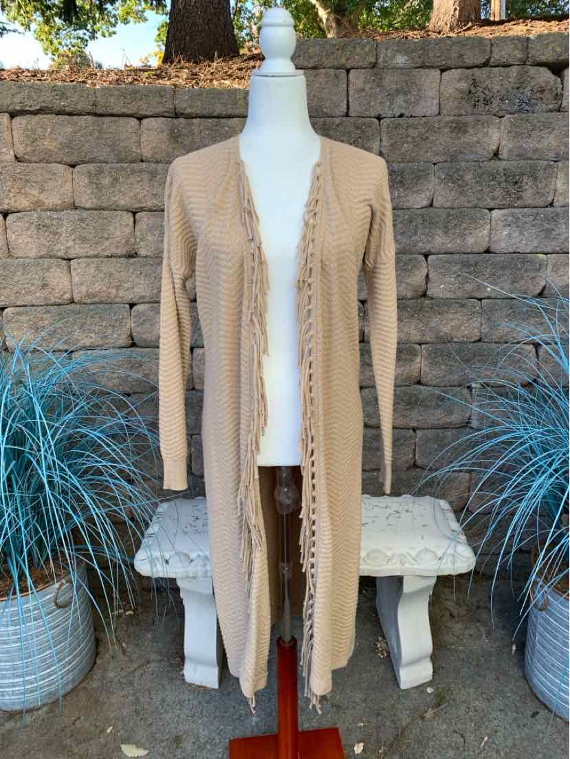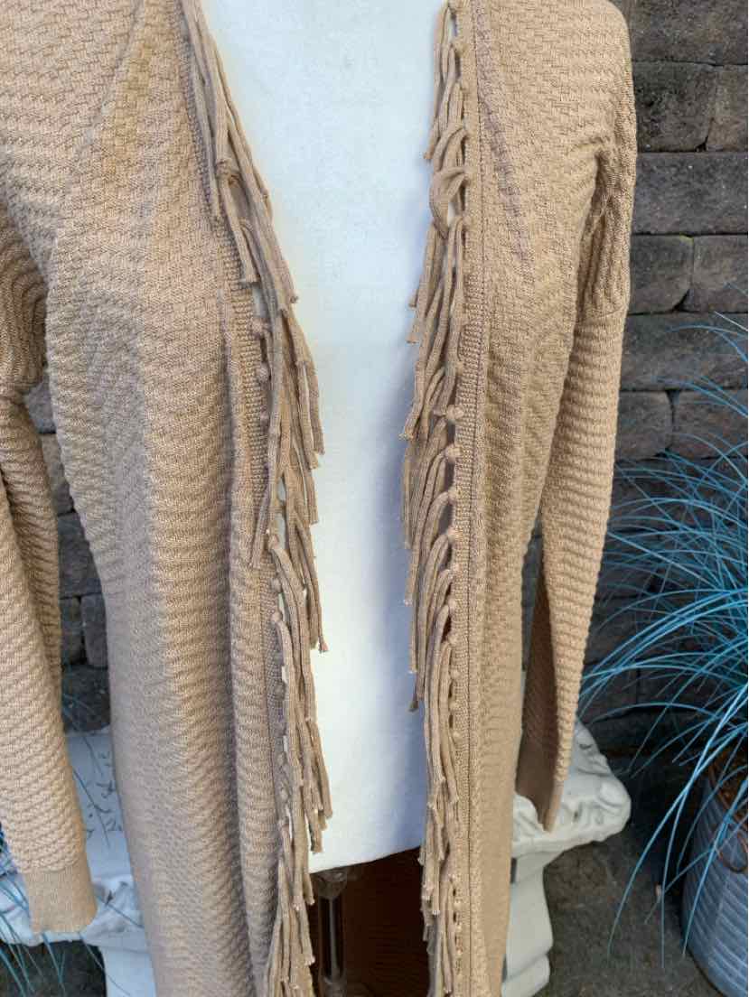 TAN KNIT CARDIGAN SWEATER W/ FRINGE, NWT