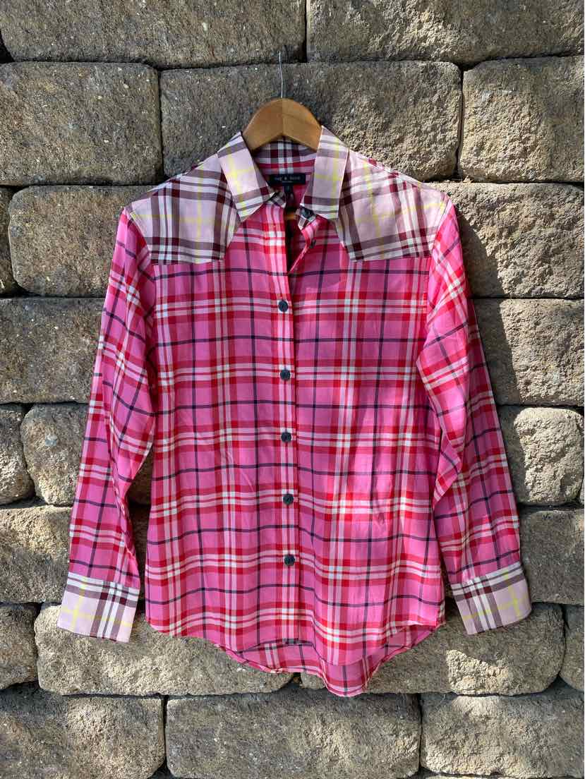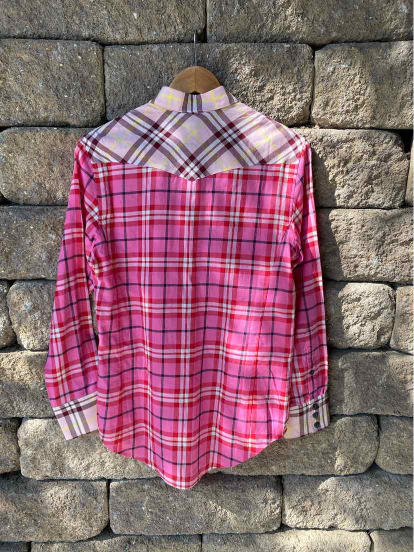 PK/RD/YW L/S BUTTON UP PLAID BLOUSE, NWT