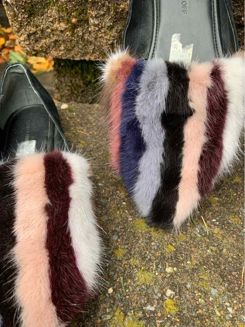 STRIPED FAUX FUR POINTED TOE SLIDE