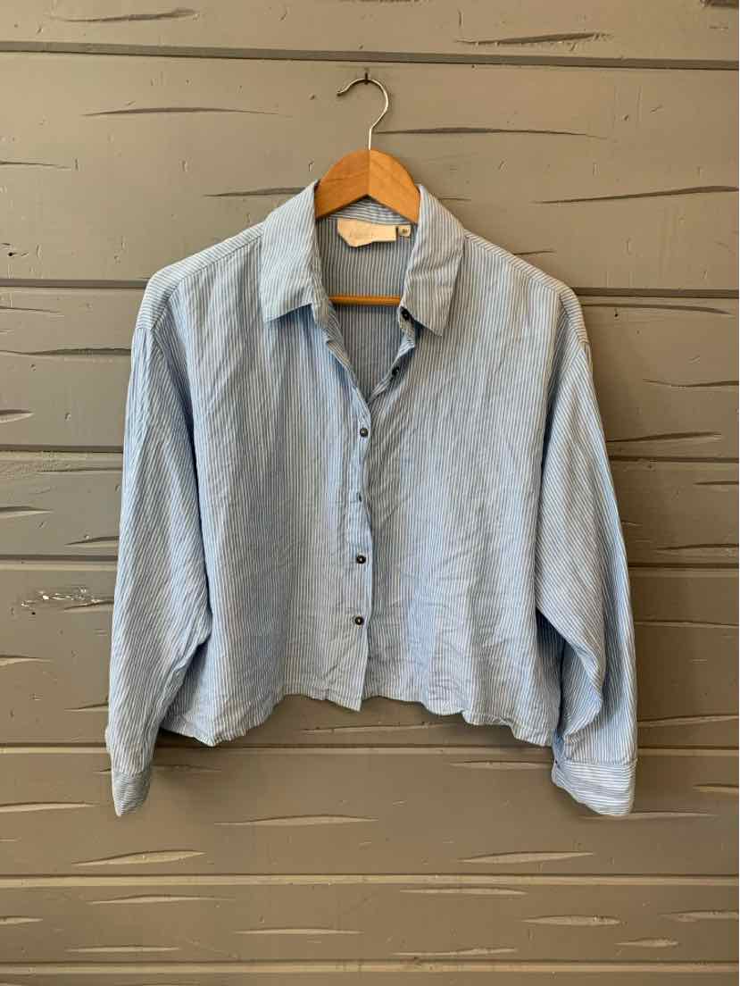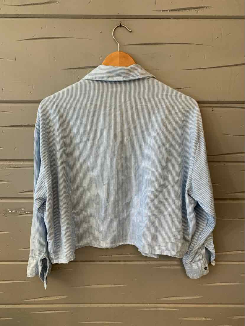 LIGHT BL/WH STRIPE CROP L/S BUTTON DOWN